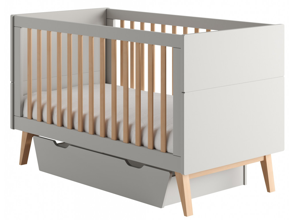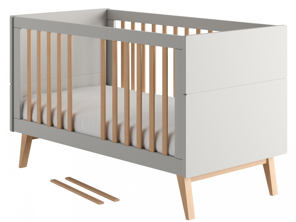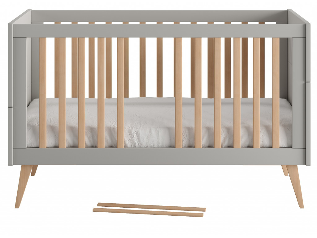 Moderná sivá postieľka Swing, zapadne do každého interiéru. Jemný vzhľad dotvára prírodné bukové drevo v kombinácií s MDF doskou. Keď dieťa z postieľky vyrastie, je možné po odnímaní bočných stien vytvoriť posteľ pre predškoláka. Aby sa dieťa cítilo bezpečne, je možné na posteľ pripevniť ochrannú zábranu pred pádom. Posteľ sa dá nakoniec prerobiť na pohovku vďaka nasadeniu pôvodným trom stenám. V izbe tak vytvorí luxusný kus nábytku, ktorý padne do oka.