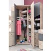 Rohová skriňa Delta DL2 zaujme po vizuálnej i praktickej stránke. Skriňa ponúka veľký vnútorný priestor s otvorenými poličkami a závesnými tyčami. V skrini tak okrem oblečenia, nájdu svoje miesto aj športové potreby, hračky a sezónne vecí či odevné doplnky.