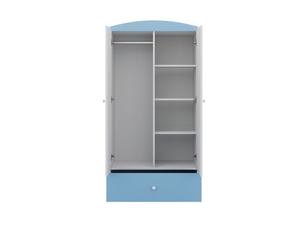 Skriňa Babydreams sa hodí do každého štýlu izby, navyše je priestranná a zmestí sa do nej veľa detského oblečenia. Modrá skriňa sa hodí do detskej izby pre chlapčeka. Skriňa sa ľahko kombinuje aj s inými kúskami nábytku z kolekcie Babydreams.