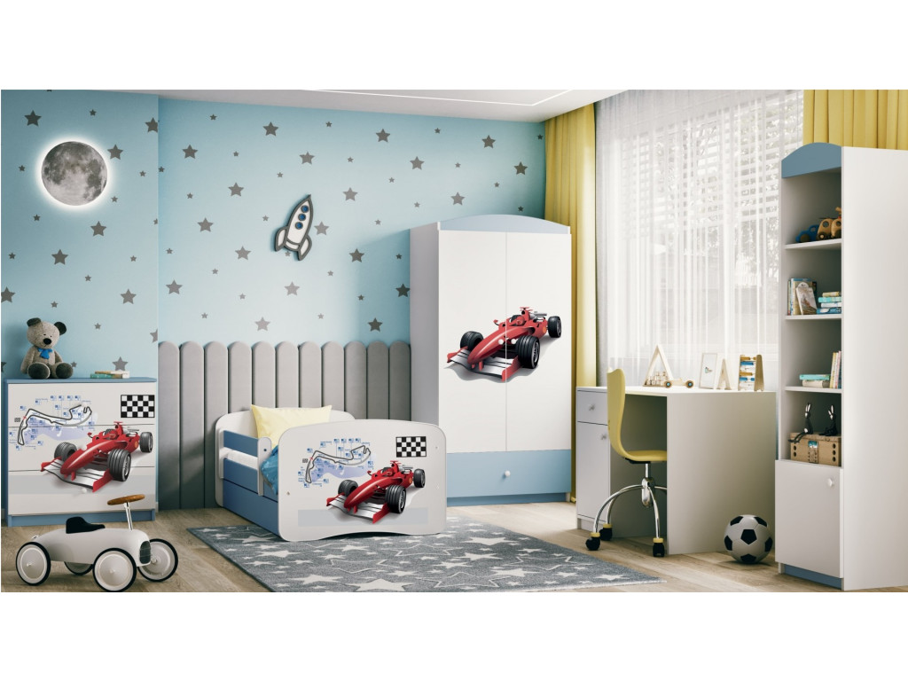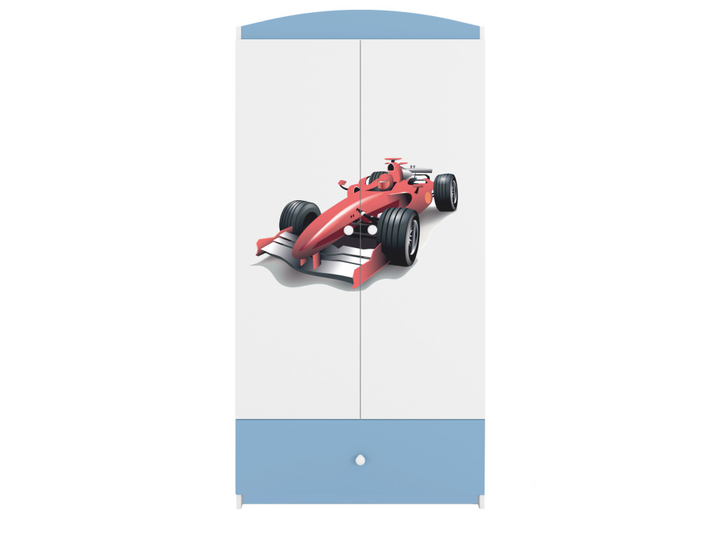 Detská skriňa je priestranná a zmestí sa do nej veľa detského oblečenia. Bielo - modrá skriňa s motívom Formule sa hodí do detskej izby pre chlapčeka. Skriňa sa ľahko kombinuje aj s inými kúskami nábytku z kolekcie Babydreams.