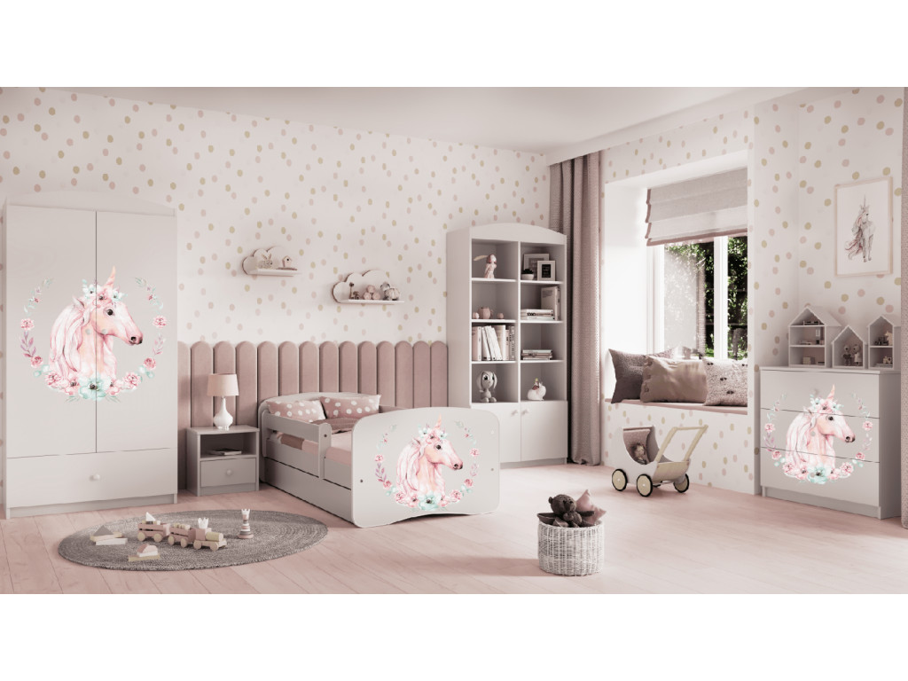 Detská skriňa je priestranná a zmestí sa do nej veľa detského oblečenia. Biela skriňa s motívom Jednorožca sa hodí do detskej izby pre dievčatko. Skriňa sa ľahko kombinuje aj s inými kúskami nábytku z kolekcie Babydreams.