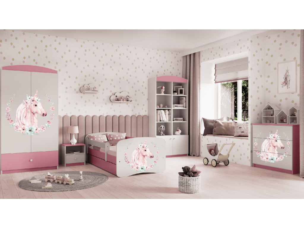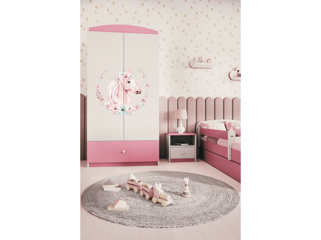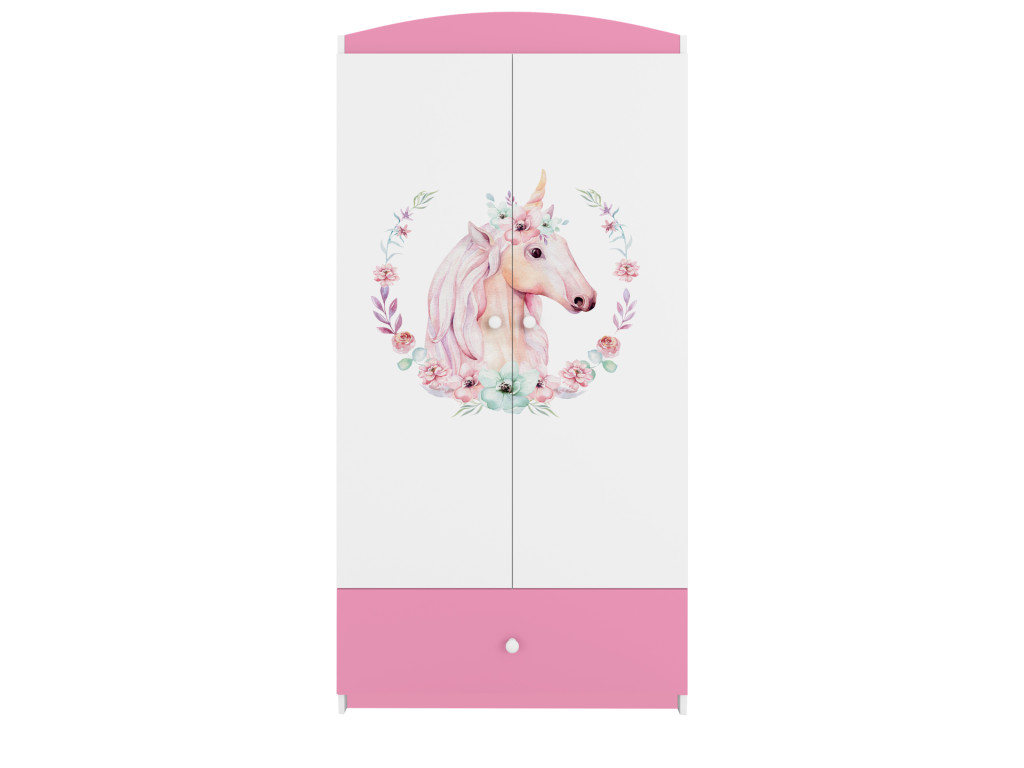Detská skriňa je priestranná a zmestí sa do nej veľa detského oblečenia. Bielo - ružová skriňa s motívom Jednorožca sa hodí do detskej izby pre dievčatko. Skriňa sa ľahko kombinuje aj s inými kúskami nábytku z kolekcie Babydreams.