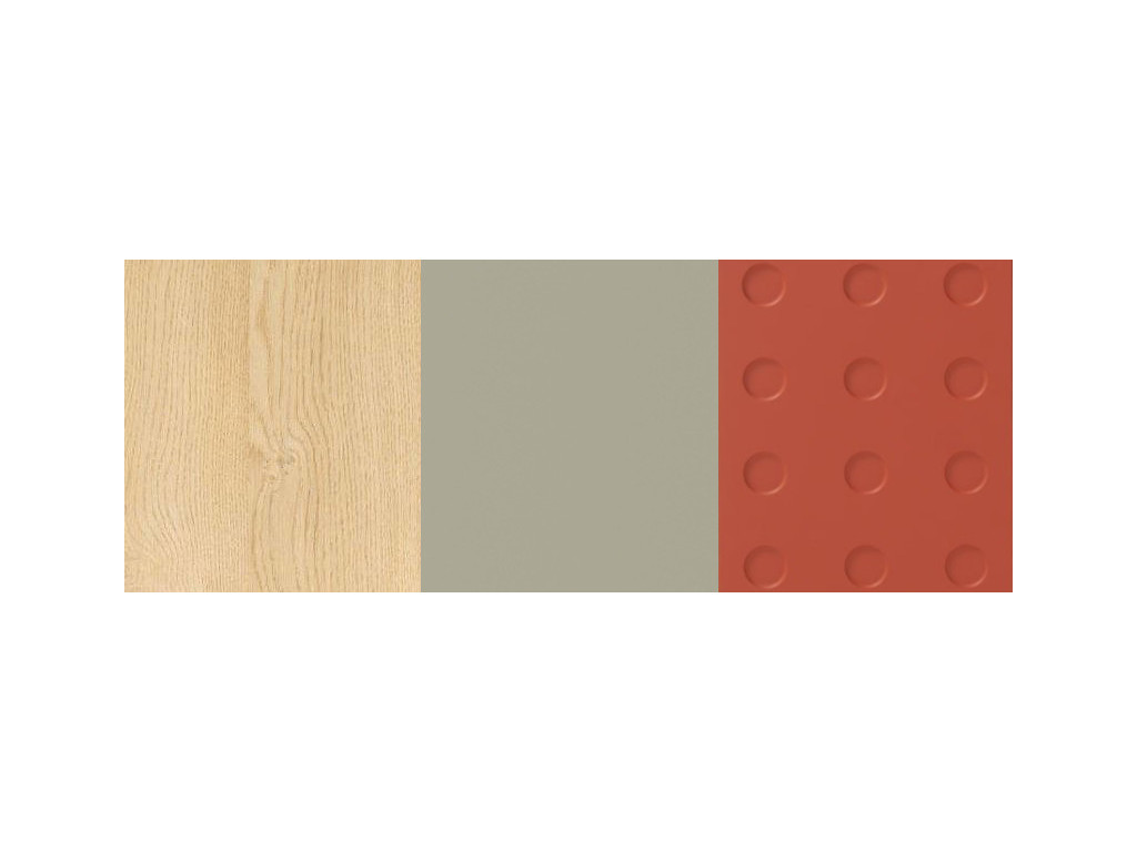 Salsa je moderná kolekcia mládežníckeho a študentského nábytku, ktorá spája odvážny dizajn, praktickosť a výrazné farebné akcenty. Vzniká unikátna kombinácia dekoru dub piškótový, sviežeho odtieňa eukalyptu a tmavooranžovej farby Salsa, doplnená o čelá so zaujímavou štruktúrou pripomínajúcou vtlačené LEGO a priehľadnými prvkami s jemným kruhovým reliéfom. Bezúchytkový systém otvárania PUSH-to-OPEN. Výsledkom je interiér, ktorý pôsobí energicky, hravo a zároveň elegantne.