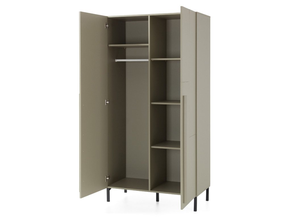 Moderná 2-dverová skriňa Sergio SR2 v béžovej farbe s kontrastnými čiernymi nožičkami. Okrem svojho dizajnu vás poteší aj svojim úložným priestorom.