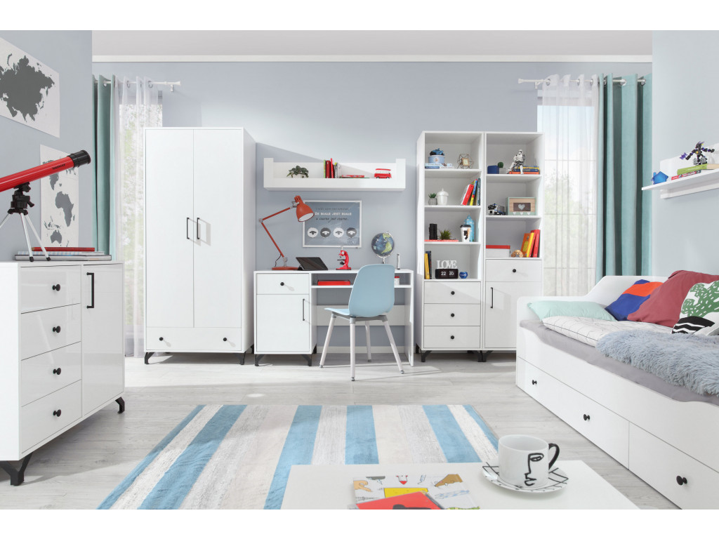 Praktická 2-dverová skriňa je dôležitou súčasťou zariadenia detskej izby a preto nesmie chýbať v žiadnej dievčenskej či chlapčenskej izbe. Najmä vtedy nie, keď sa s vekom detí zväčšuje množstvo i veľkosť oblečenia. Skriňa Bergen BE1 ponúka moderný dizajn a maximálnu funkčnosť. Vďaka polici, zásuvke i priestoru so závesnou tyčou bude uloženie oblečenia a odevných doplnkov úplnou hračkou.