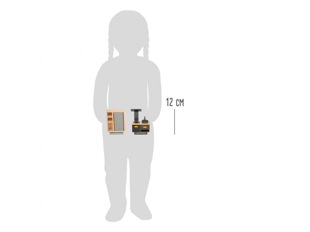 - Rozmery: skrinka 7,5x3x11 cm, kuchynský kút 8,5x4x11 cm