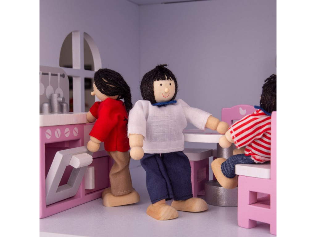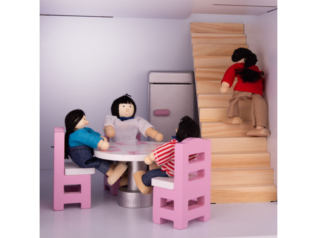 Krásny nábytok z bukového dreva sa bude hodiť do každého domčeka pre bábiky, má proste všetko, čo budú deti potrebovať na vytvoreniu kuchyne pre bábiky, ktoré sú hladné po celom dni plnom hier. Sada s deviatimi kusmi zahŕňa chladničku / mrazničku, stôl a 4 stoličky, dva kuchynské doplnky a kombinovaný sporák / drez, na ktorom tiež nájdete nákupný zoznam. Krásne detailná sada sa bude hodiť do domčeka pre bábiky štandardnej veľkosti. Podporuje kreatívnu a predstavivú hru. Vyrobené z kvalitných materiálov zo zodpovedných zdrojov. Zodpovedá európskej bezpečnostnej norme. Skladá sa z 9 dielov.