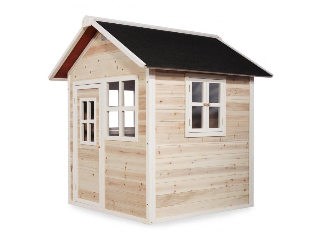 Drevený domček EXIT Loft 100 vyrobený v prírodnej farbe zaistí deťom dostatok zábavy. Detský domček na hranie stojí na zemi, zaberá málo miesta, a preto je vhodný do každej záhrady. Domček na hranie sa ľahko montuje vďaka prefabrikovaným panelom. Dokážu ho poskladať 2 dospelé osoby. Pre drevený domček na hranie EXIT Loft 100 je typický elegantný škandinávsky dizajn, do ktorého sa zamilujú všetky deti.
