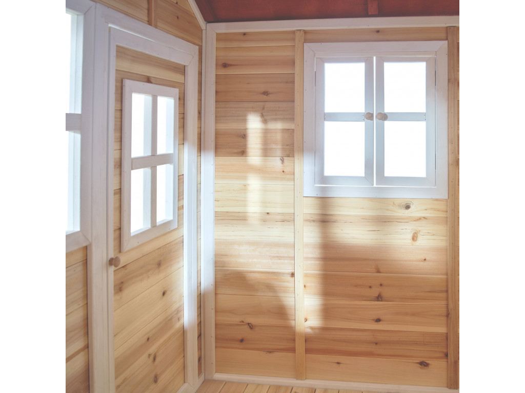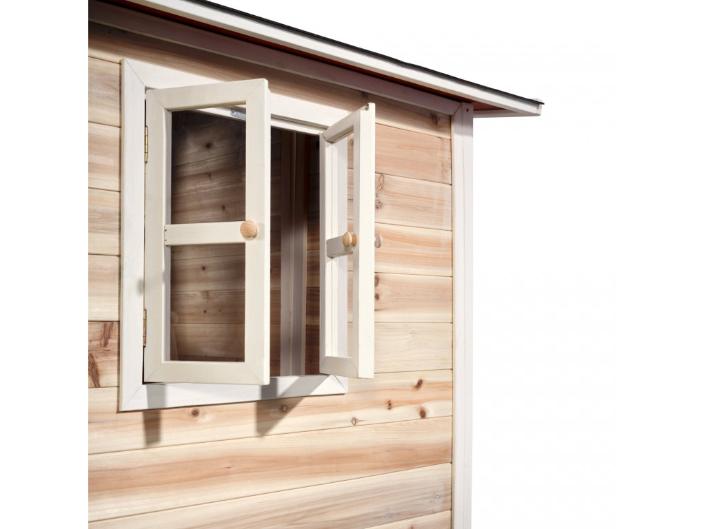 Záhradné domčeky pre deti s pieskoviskom EXIT Toys sú vyrobené z cédrového dreva s certifikátom FSC® (FSC 100 %, FSC® SCS-COC-007799). Tento druh dreva sa neštiepi a je prirodzene odolný voči poveternostným vplyvom ako je dážď a teda odolný voči hnilobe dreva.