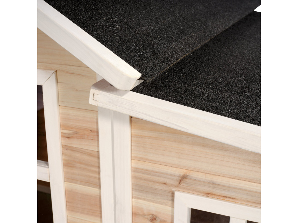 Vodoodolná bitúmenová strecha zaistí pohodlné používanie za každého počasia. Detský domček s rebríkom EXIT Loft 350 nemusíte pred použitím ošetrovať, deti sa s ním môžu bezpečne hrať hneď od začiatku. Výška platformy je 56 cm. Okná domčeka sú z bezpečnostných dôvodov z plastu.