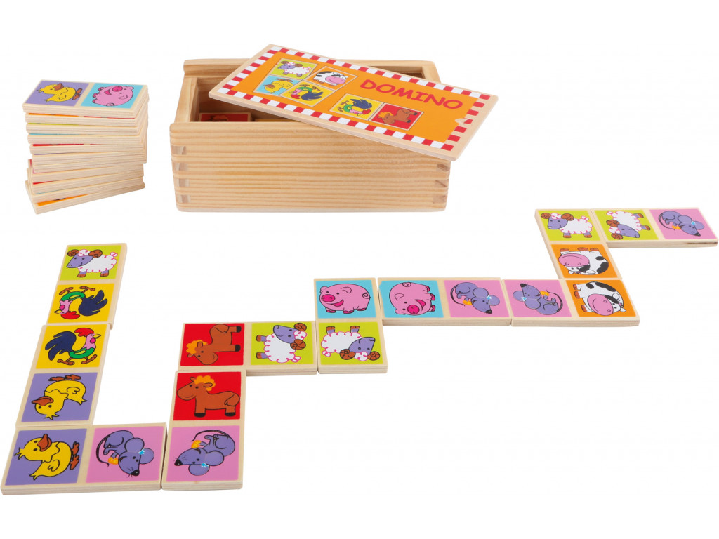 Krásne domino so zvieratkami vyrobené z dreva a uložené v praktickej drevenej krabičke. Skvelé na spoznávanie zvieratiek, podporuje logické myslenie a rozvíja jemnú motoriku detí.