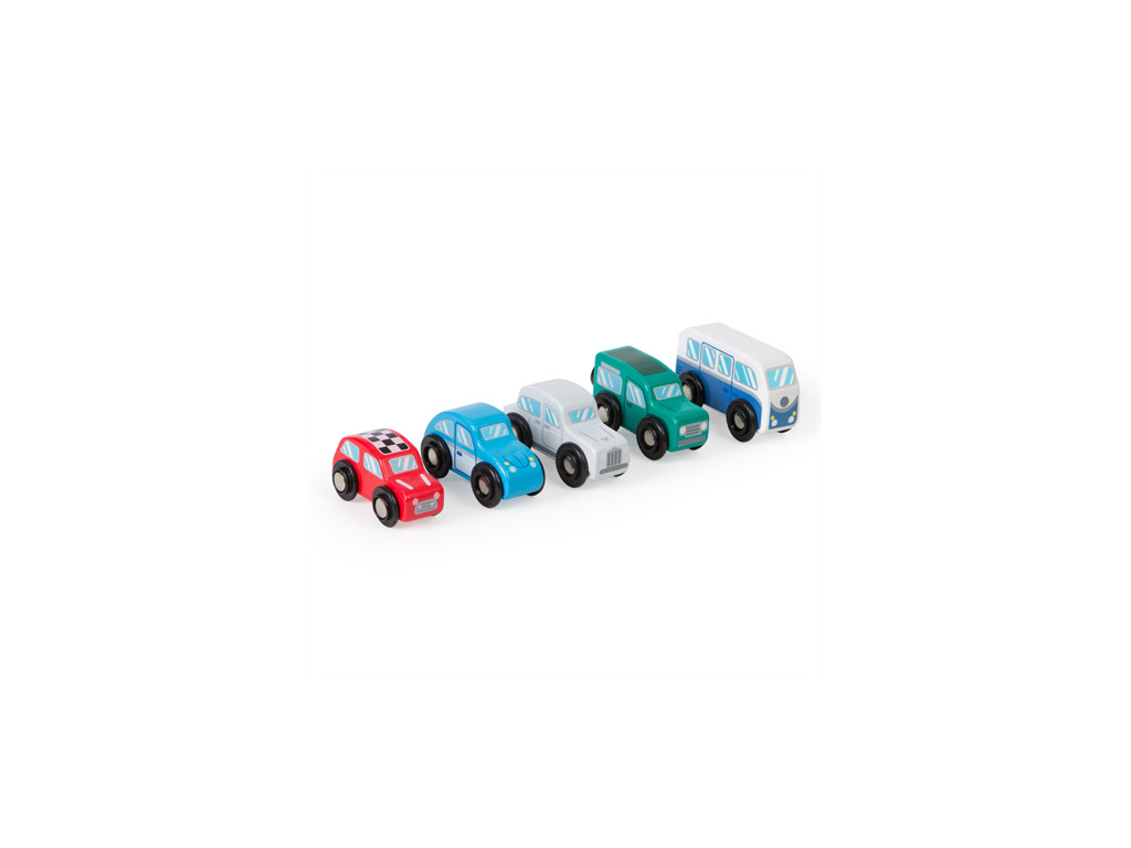 S touto retro sadou sa dostanete z bodu A do bodu B veľmi štýlovo. Zložito navrhnuté, vytvorené a namaľované. Tieto hračky majú zaoblené okraje, rohy a kolesá a tak sú ideálne pre malé ruky. Deti, ktoré sú po autách divé si tieto hračky zamilujú. Môžu jazdiť všade dookola, parkovať a jednoducho sa hrať ako len im to ich predstavivosť dovolí. Všetky vozidlá sú pestro farebné, jednoducho identifikovateľné a deti si s nimi užijú veľa zábavy. Táto hracia sada s piatimi kusmi obsahuje rozdielne autá vrátane minibusu a závoďáku... Podporuje detskú kreativitu a predstavivosť. Rozvíja koordináciu rúk a očí a jemnú motoriku. Vyrobené z kvalitných materiálov zo zodpovedných zdrojov. Zodpovedá európskej bezpečnostnej norme.