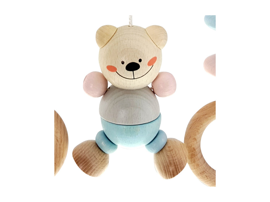 Drevená mini hrazdička do kočíka alebo postieľky s figúrkou medvedíka z bukového dreva.
