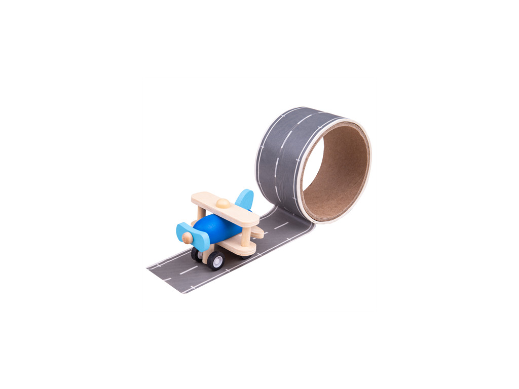K dispozícii sú rôzne farebné varianty a motívy lietadielok, ktoré zasielame náhodne. Ľahko použiteľnú cestnú pásku stačí odlepiť a prilepiť na ľubovoľné miesto. Súčasťou je tiež drevené lietadlo.