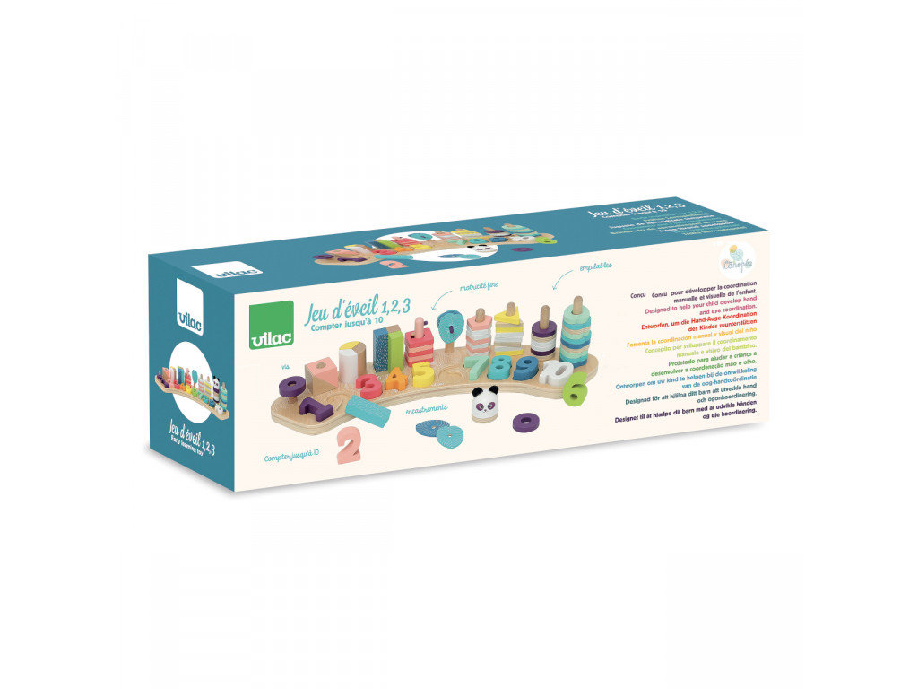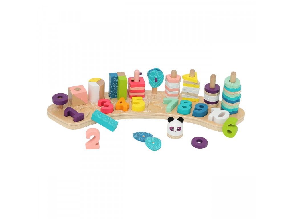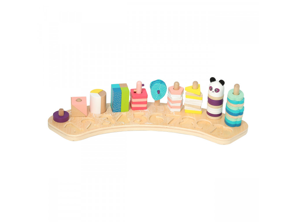 Pomocou jednoduchej skladačky môžu deti spoznávať čísla a ich význam utváraním spojitostí medzi zrakom a motorikou. Na jej návrhu sa podieľali odborníci a je vytvorená tak, aby deti jednotlivé vzťahy mohli objavovať prirodzene a samostatne v súlade s praxou výukových metód Montessori. Triedenie rozmanitých, atraktívnych farieb, vzorov a tvarov pomáha deťom rozvíjať sústredenie a celú škálu poznávacích schopností. Starostlivo opracované, pevné a odolné drevo, z ktorého je hračka vyrobená, pri hre jemne rozvíja a stimuluje hmat.