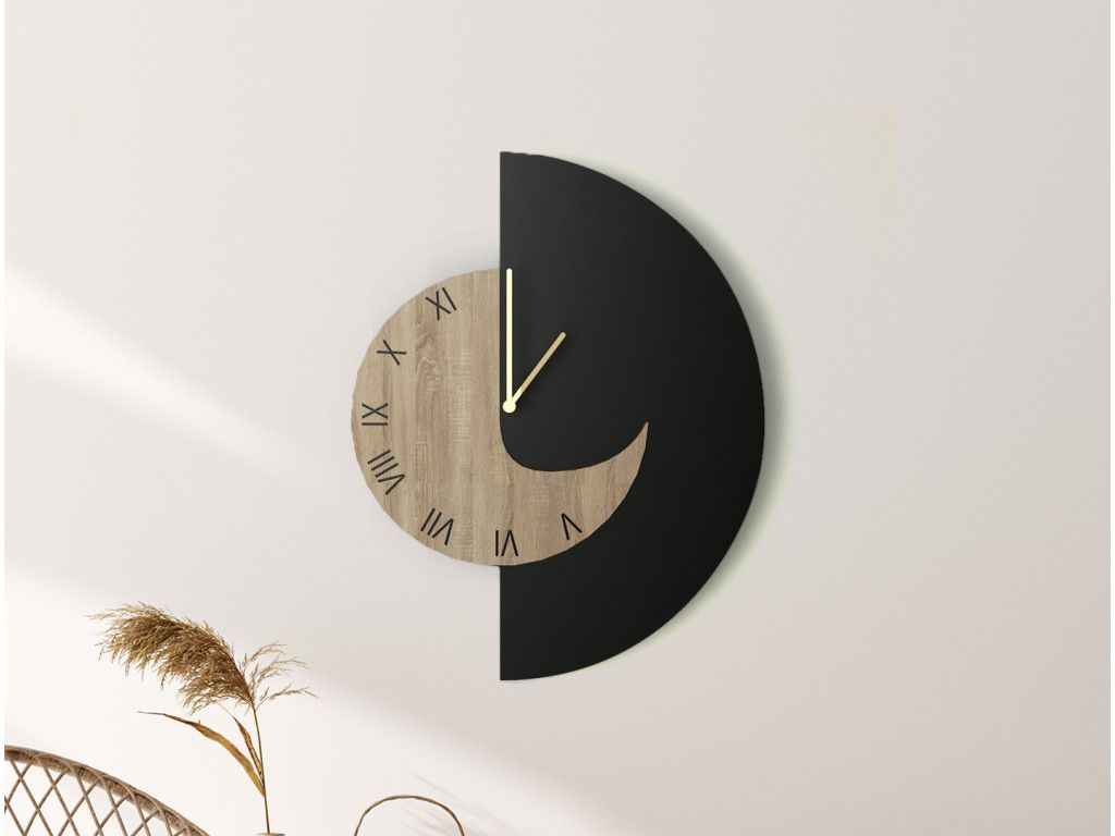 Štýlové hodiny na stenu, ktoré spoja praktickosť s kombinovaným vzhľadom. Pevná HDF doska zaručuje odolnosť a dlhú životnosť. Výhodou je tichý chod.