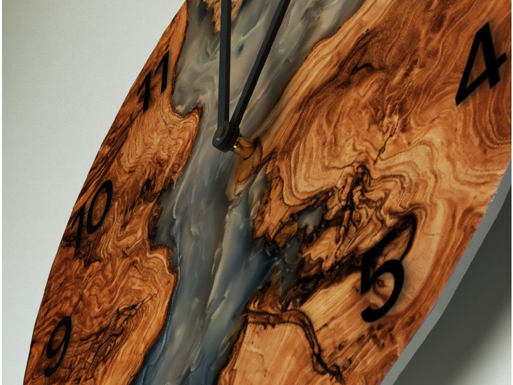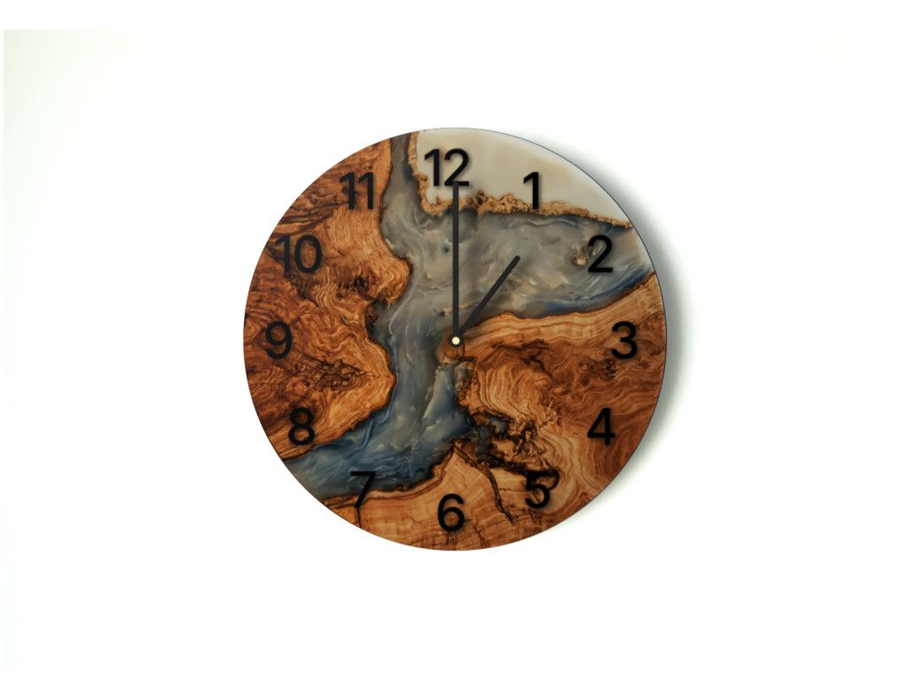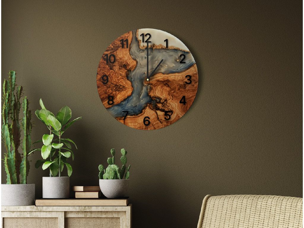 Štýlové hodiny na stenu s moderným efektom dreveno - epoxidového vzoru (UV tlač) ako výrazný dizajnový doplnok. Vďaka tichému mechanizmu sú ideálne do spálne aj obývačky.
