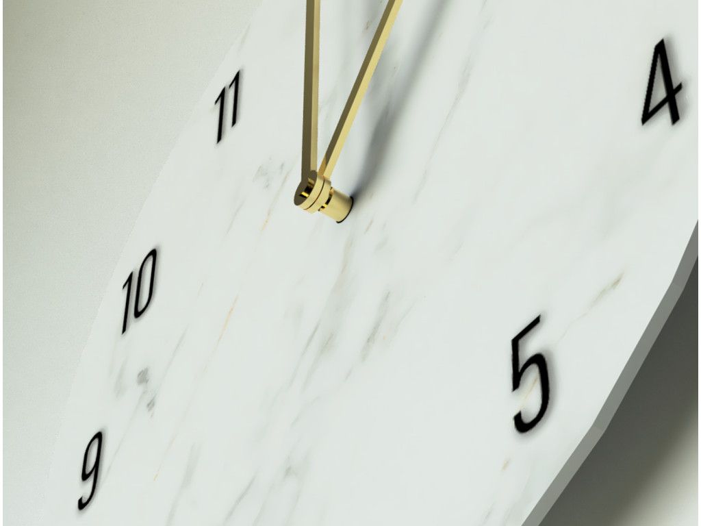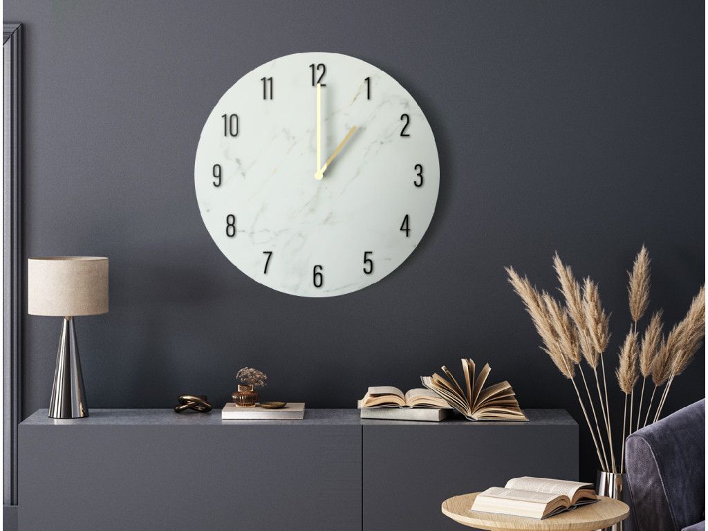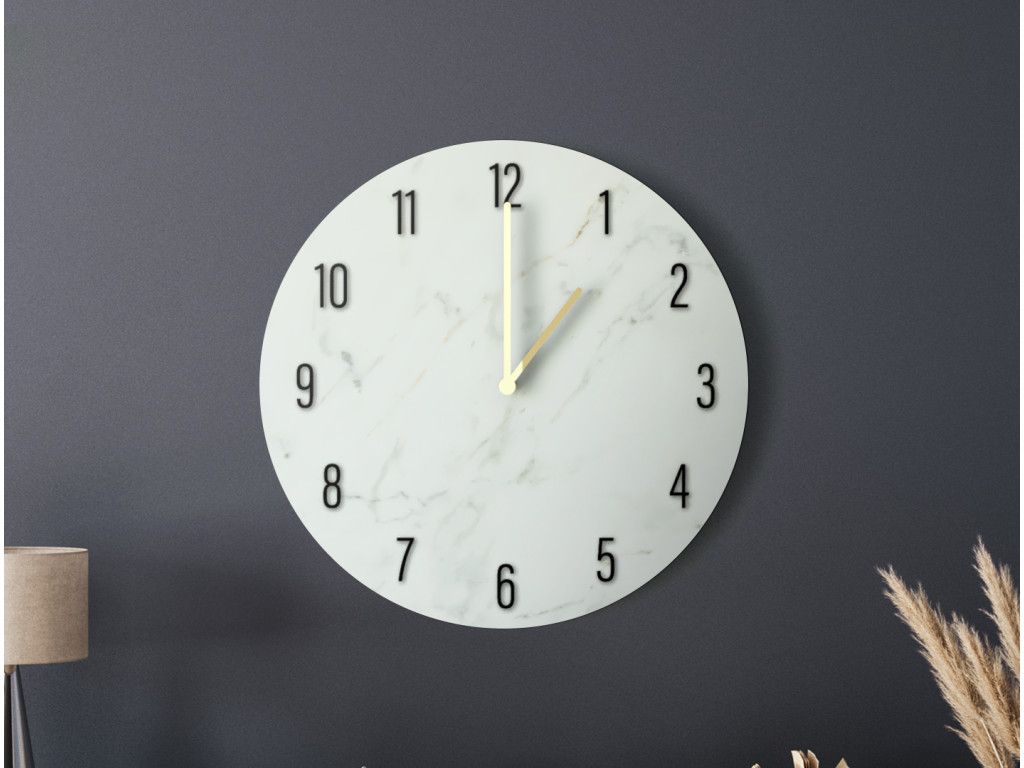 Jemné nástenné hodiny inšpirované bielym mramorom pre elegantný a nadčasový interiér. Kvalitné spracovanie a tichý chod pre pohodlné každodenné používanie.