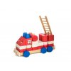 Drevené hasičské auto pre malých požiarnikov. Sada obsahuje hasičské auto s pohyblivým rebríkom a skladá sa z množstva farebných blokov, čo prináša veľa zábavy pri jeho stavaní.