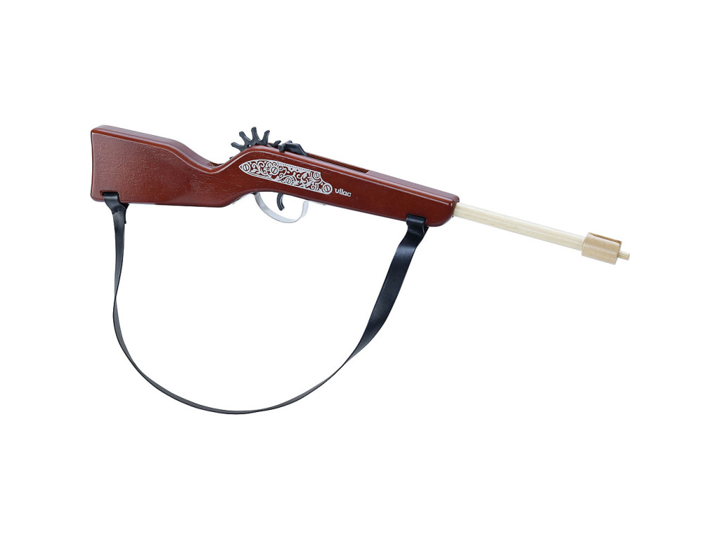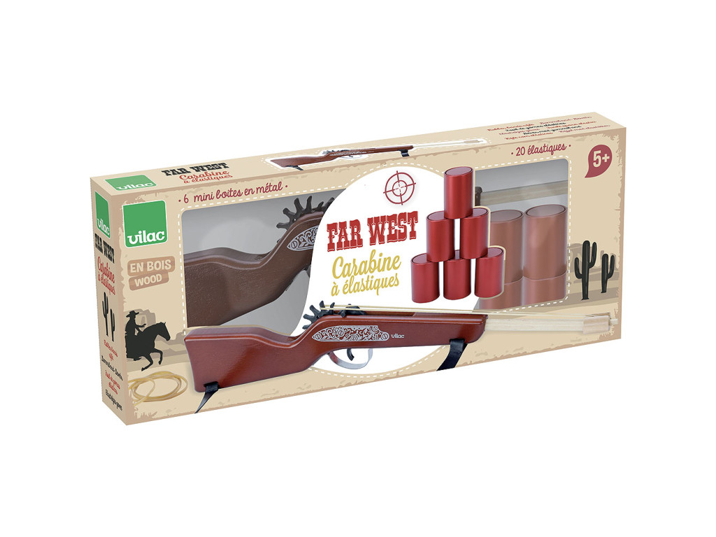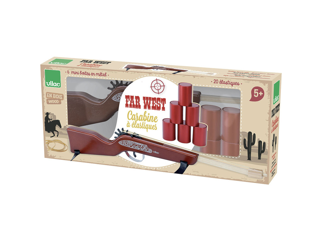 - Obsahuje drevenú pušku, 20 gumičiek a 6 mini plechoviek