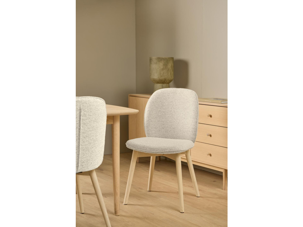 Stolička Cindy ponúka elegantný dizajn v krémovej látke a prírodnom dreve. Vyznačuje sa precíznym čalúnením s dekoratívnym gombíkom a zipsom. Základňa z olejovaného kaučukovníka dodáva prírodný charakter. Balenie obsahuje 2 kusy.
