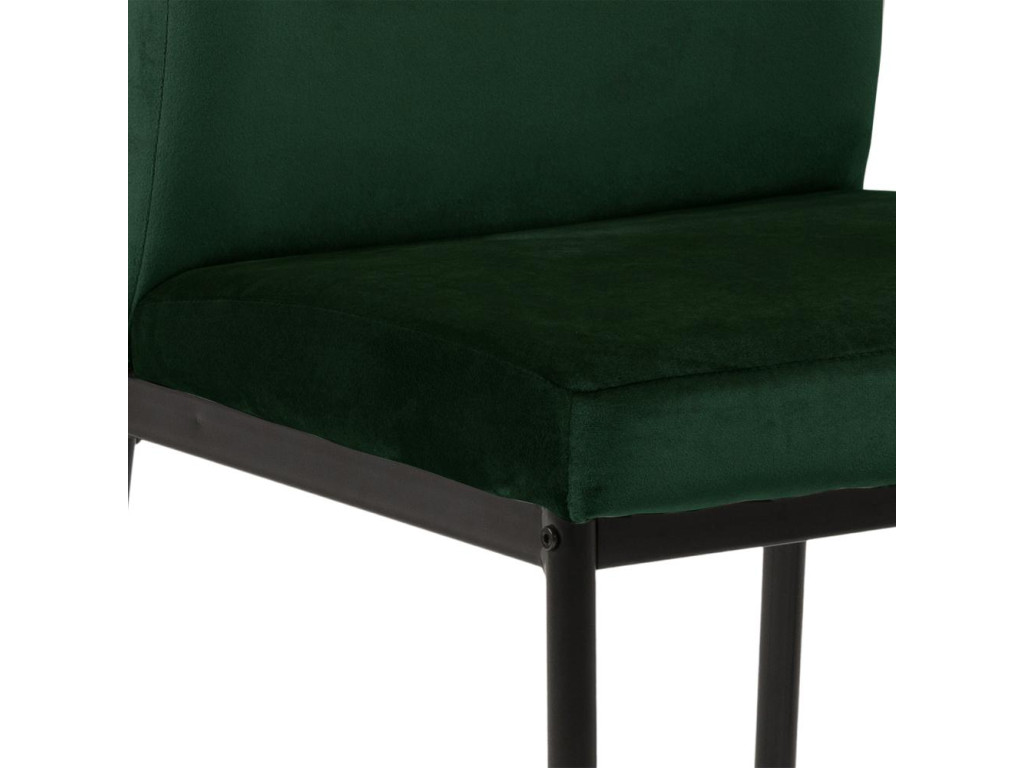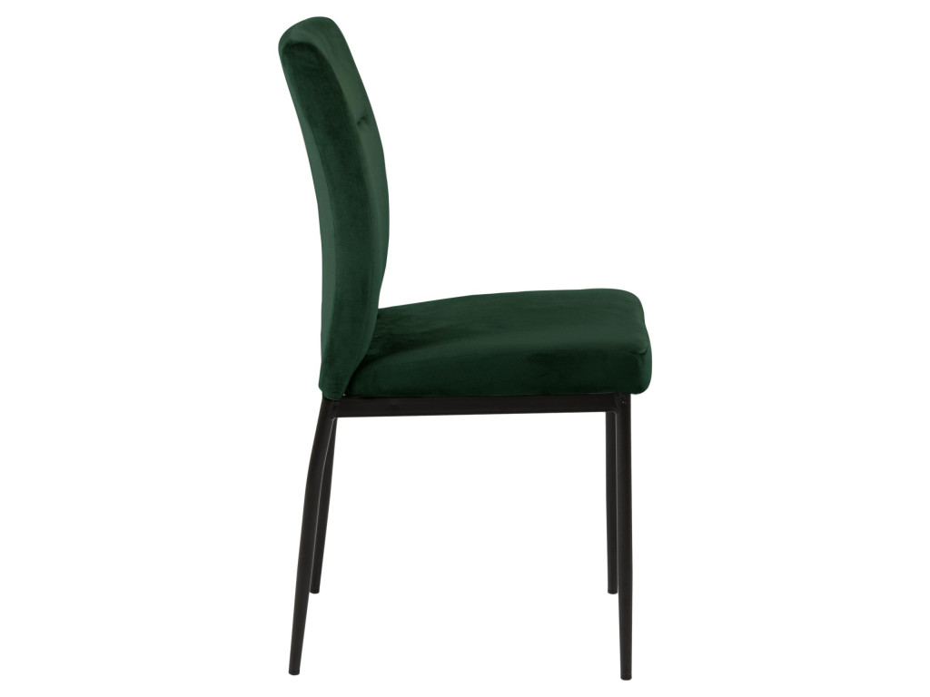 Stolička Demi v tmavozelenej farbe dodáva interiéru sviežosť a štýl. Oceľová základňa zaručuje pevnosť, zatiaľ čo čalúnenie poskytuje pohodlie pri dlhšom sedení. Horizontálne prešívanie zvýrazňuje moderný vzhľad. Vhodná do jedálne alebo kuchyne s dizajnovým zameraním.