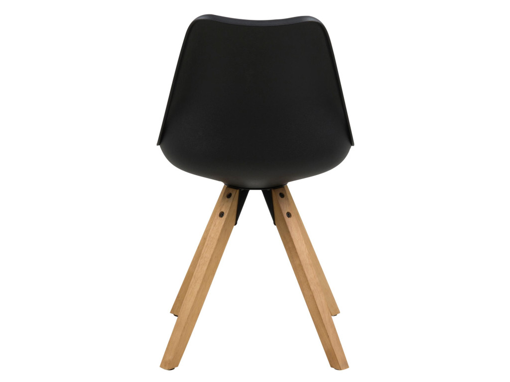 Elegantná jedálenská stolička Dima kombinuje čiernu ekokožu s prírodným drevom pre harmonický kontrast. Pohodlné čalúnenie a ergonomický tvar s opierkami zaručujú komfort aj pri dlhšom sedení. Základňa z lakovaného kaučukovníka dodáva stabilitu a prírodný šmrnc. Vhodná pre moderné i klasické jedálne.
