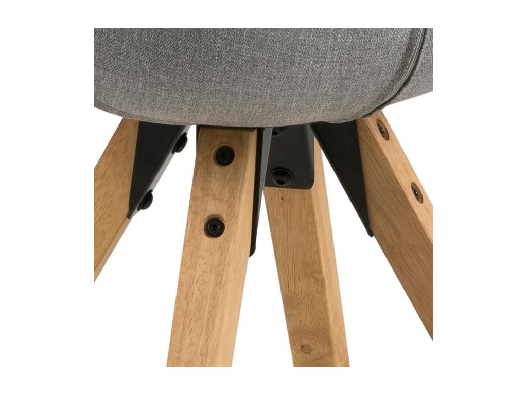 Komfortná stolička s čalúnením v svetlosivej látke a masívnou podstavou z kaučukovníka v prírodnej úprave. Ozdobné prešívanie a gombík na operadle jej dodávajú jemný detail. Vhodná do moderných aj škandinávskych interiérov. Predáva sa ako praktická súprava 2 kusov.