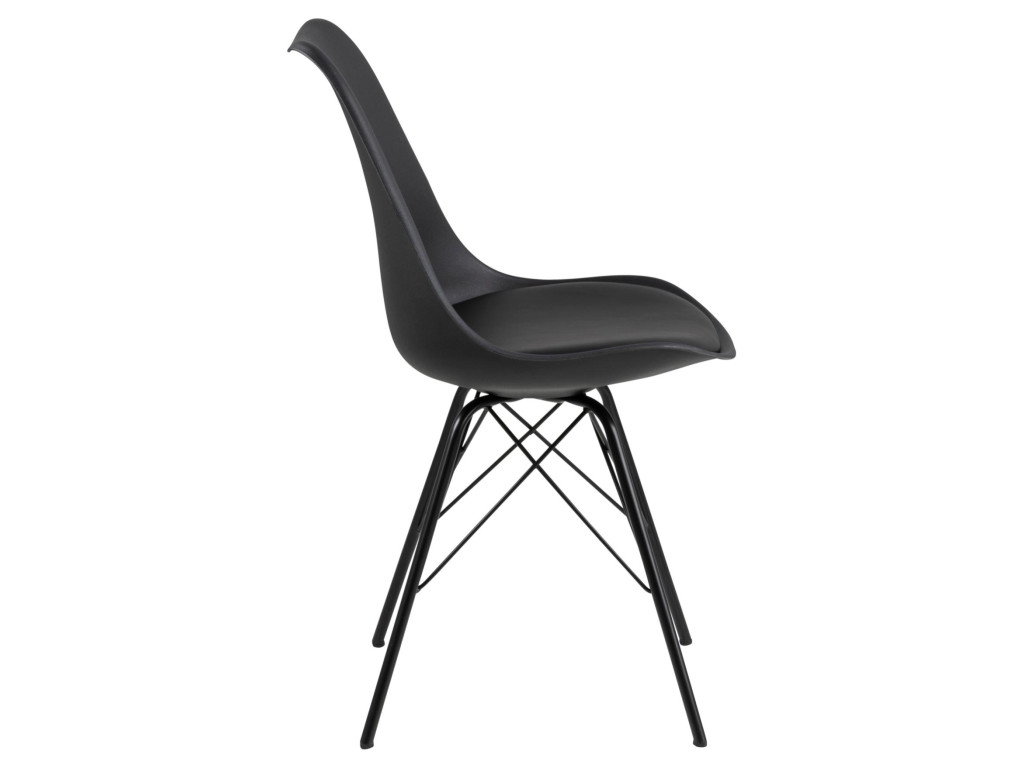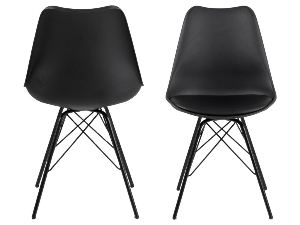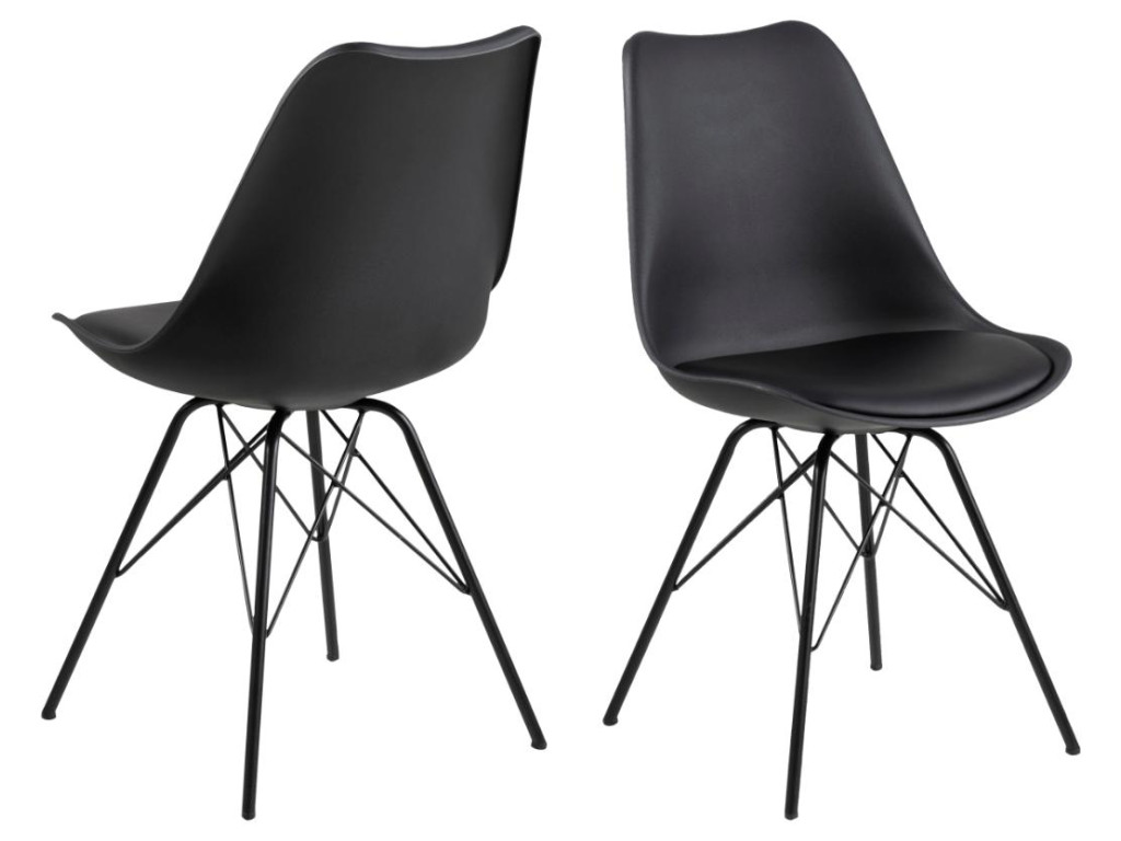 Stolička Eris v čiernom prevedení prináša elegantný kontrast medzi čiernym čalúnením a robustnou oceľovou základňou. Je vyrobená z kvalitnej ekokože, ktorá je praktická na údržbu a zároveň komfortná na sedenie. Dizajn s matnou povrchovou úpravou pôsobí moderne a štýlovo. Ideálna pre moderné interiéry jedální a kuchýň.
