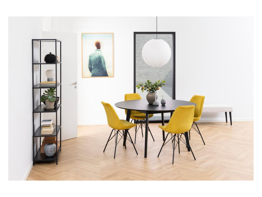Model Eris v žltej farbe prináša do priestoru svieži a energický vzhľad. V kombinácii s čiernou oceľovou základňou vytvára vizuálne atraktívny kontrast. Skvelá voľba pre tých, ktorí chcú interiér oživiť farbou.