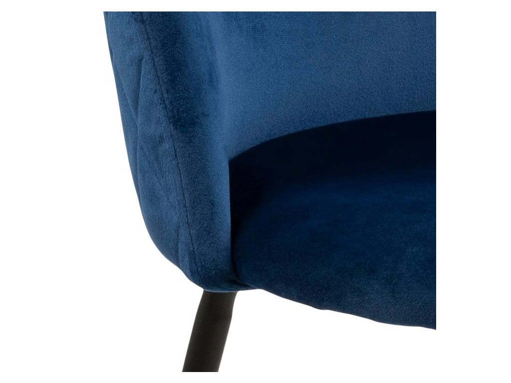 Stolička Louise v tmavomodrej farbe s čiernou kovovou konštrukciou pôsobí sofistikovane a noblesne. Vďaka ozdobnému prešívaniu v štýle harlekýn je aj vizuálne výrazná. Ideálna do moderne zariadenej jedálne. Čalúnenie Dublin zabezpečuje príjemné sedenie.