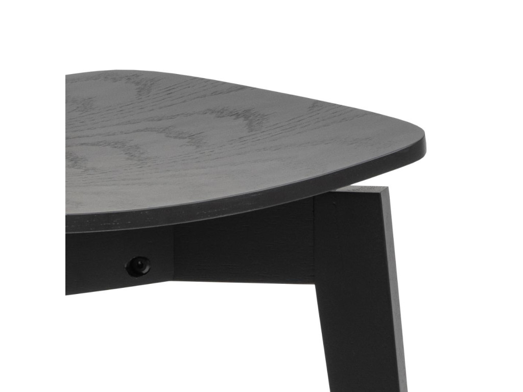 Stolička Roxby v matnej čiernej farbe ponúka minimalistický vzhľad s dôrazom na detail. Je vyrobená z lakovanej dubovej dyhy a kaučukovníka, čo zaručuje dlhú životnosť. Ideálna do industriálne alebo moderné ladeného interiéru.