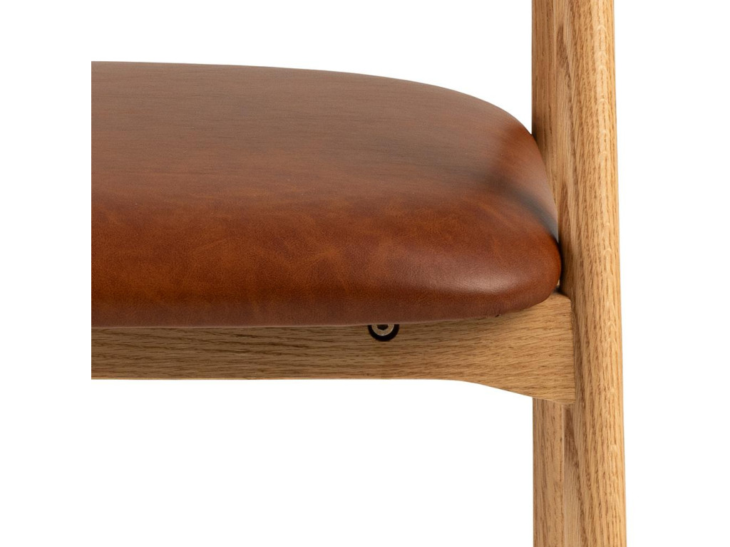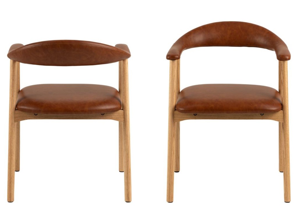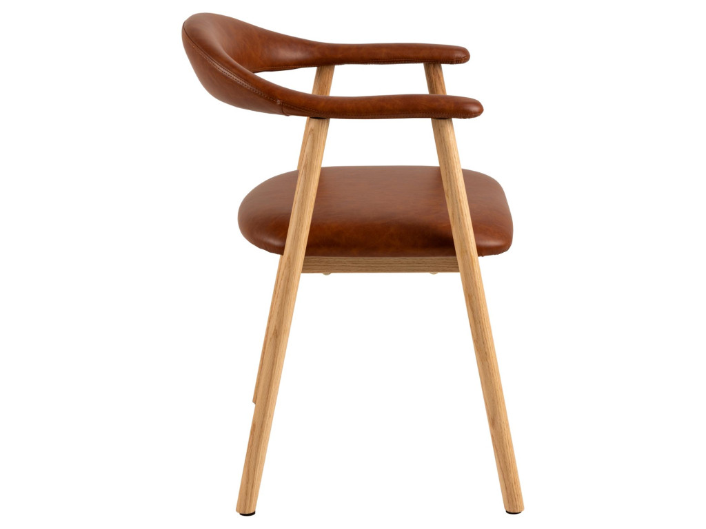 Kreslo Addi kombinuje komfort čalúnenia s teplom prírodného dreva. Brandy odtieň ekokože vyniká svojím luxusným vzhľadom, zatiaľ čo základňa z olejovaného duba dodáva stabilitu. Elegantné detaily ako lakťová opierka a decentný prešiv ho robia skvelou voľbou do štýlových jedální.