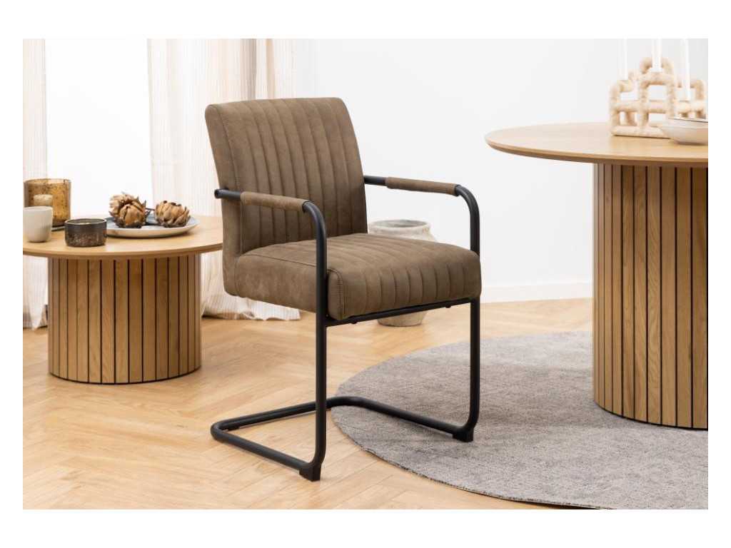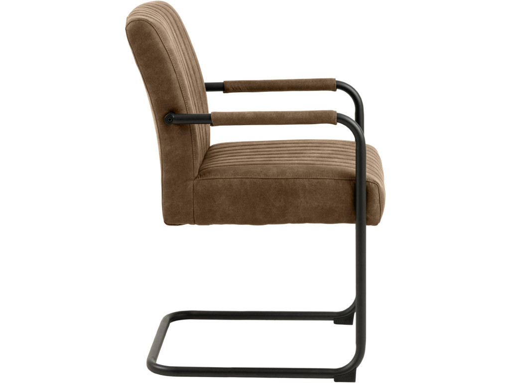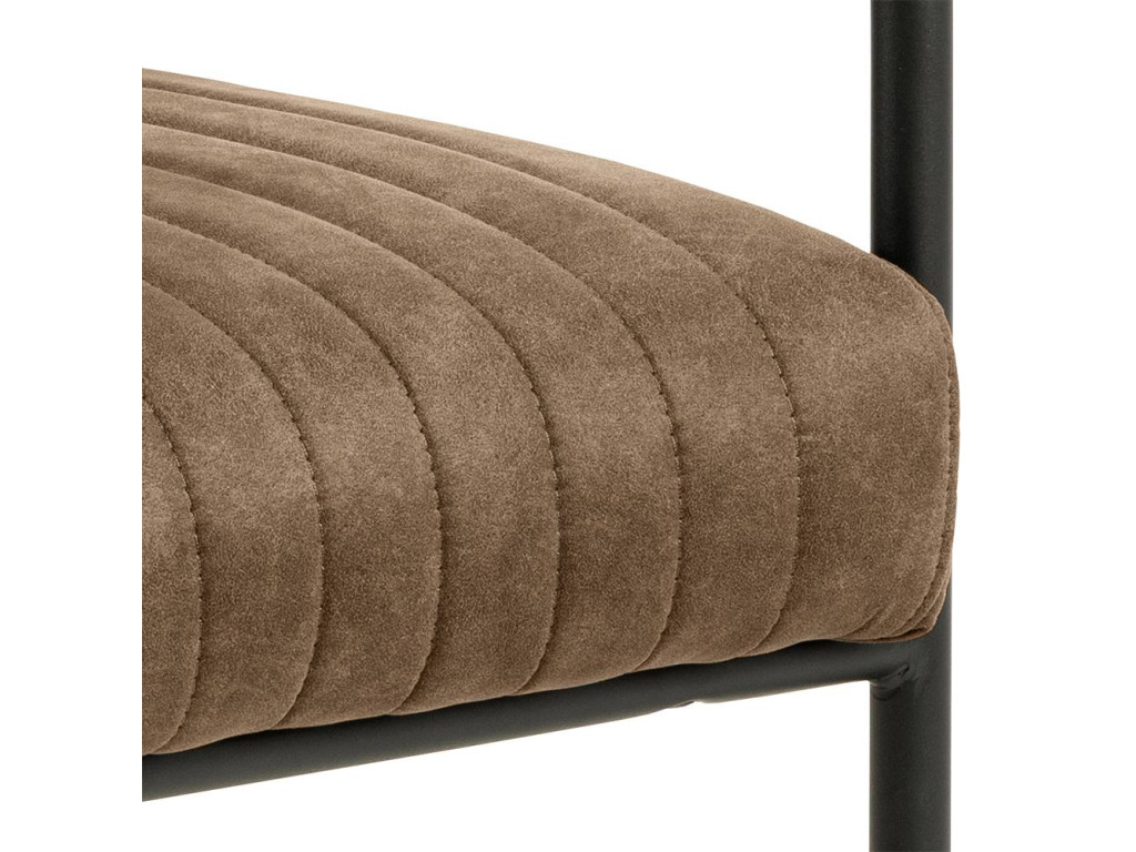 Kreslo Adele v hnedom odtieni ponúka ergonomický komfort a príťažlivý dizajn. Všívané detaily, pružiny a pevná oceľová konštrukcia zabezpečujú pohodlné sedenie pri stole. Hodí sa najmä k tmavším dreveným stolom alebo industriálnym interiérom.