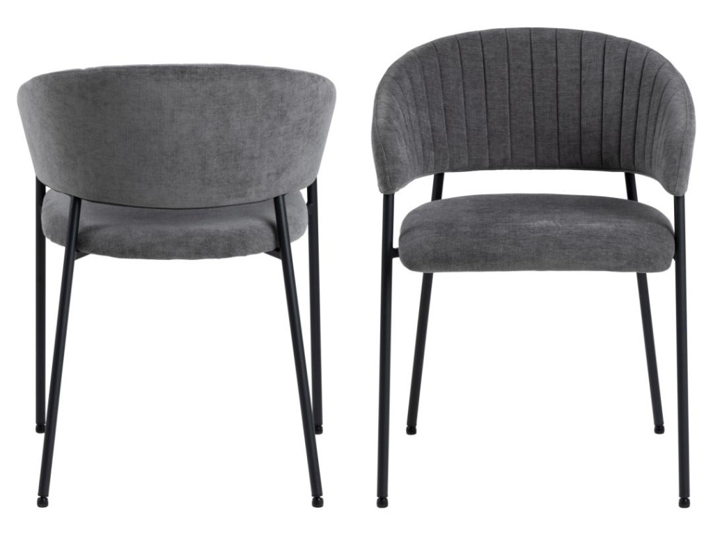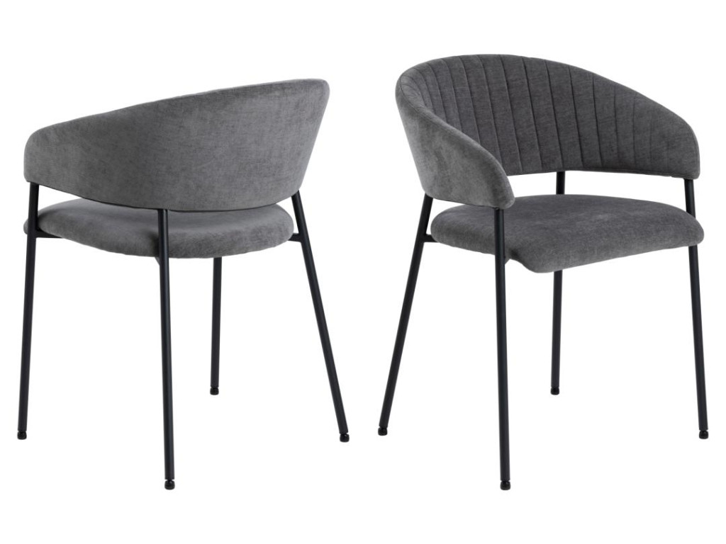 Kreslo Ann je ideálnou voľbou do štýlovej jedálne či kuchyne. Tmavosivé čalúnenie Danny v kombinácii s čiernou kovovou základňou pôsobí decentne a moderne. Vertikálne prešívanie a pohodlné lakťové opierky zvyšujú komfort pri sedení. V balení nájdete 2 kusy kresiel.