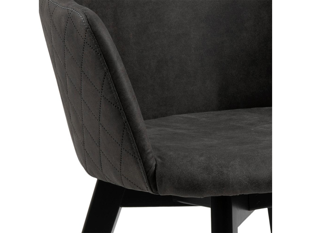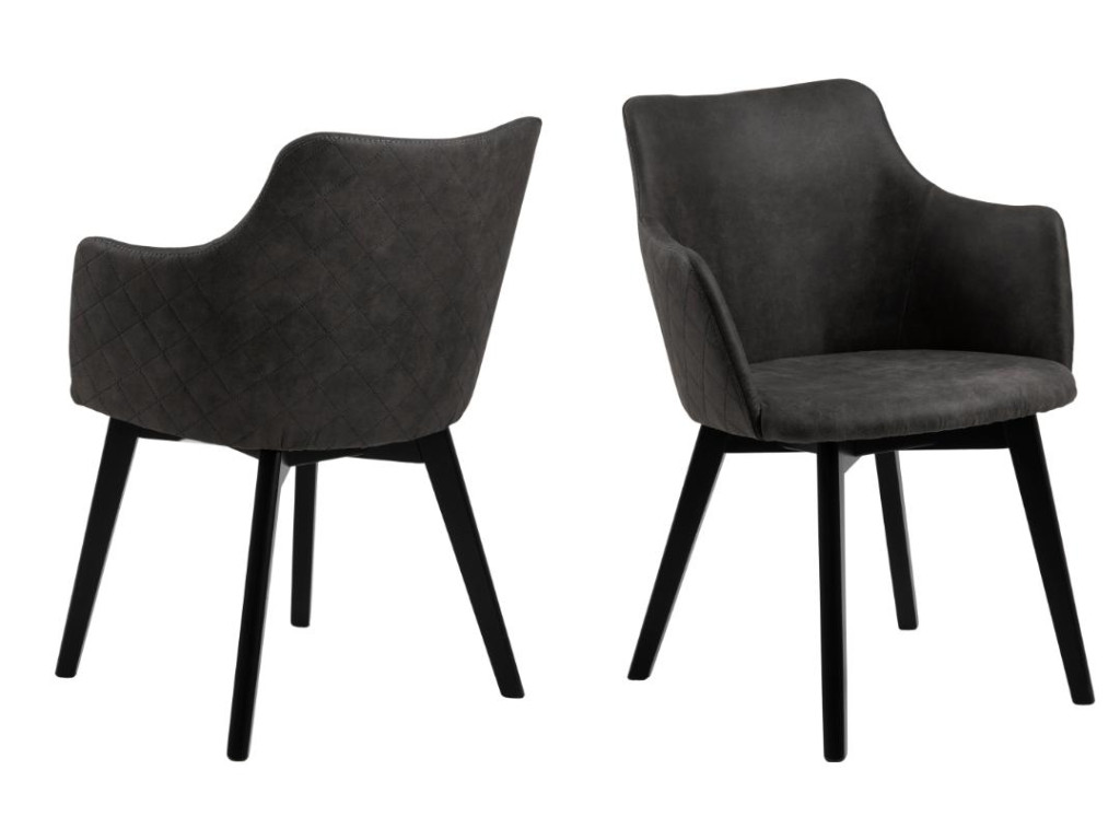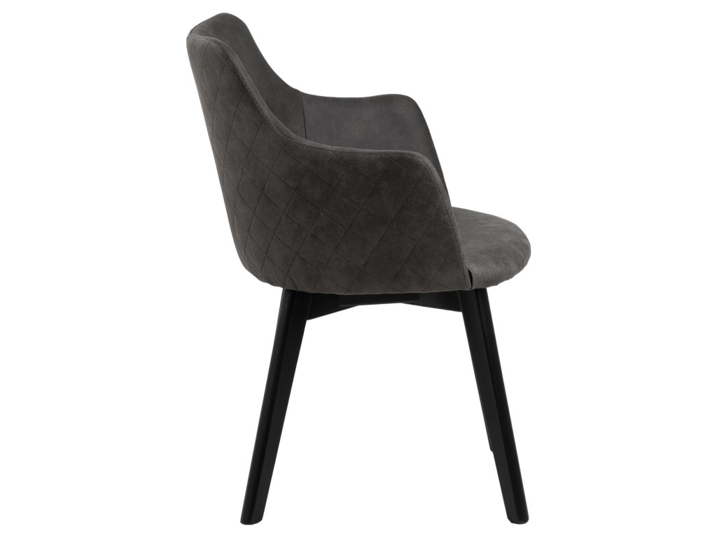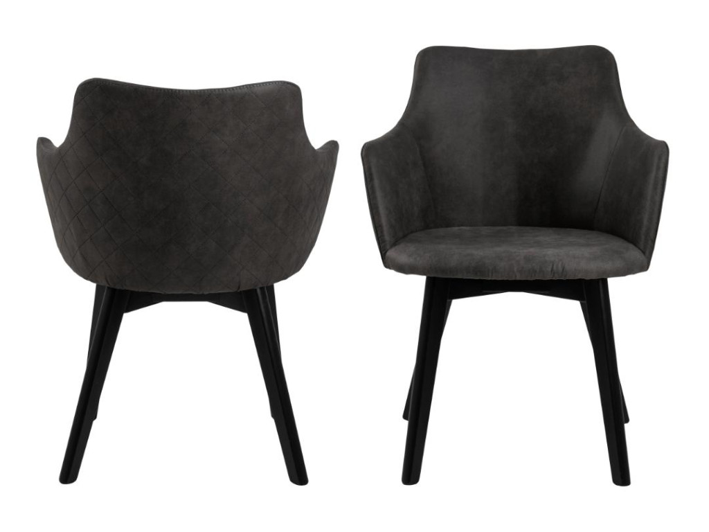 Kreslo Bella v antracitovom odtieni je komfortným a štýlovým doplnkom jedálenského kútika. Lakťové opierky a čalúnený sedák ponúkajú pohodlie počas dlhších večerí. Čierna dubová konštrukcia zaisťuje stabilitu aj dlhodobú výdrž.