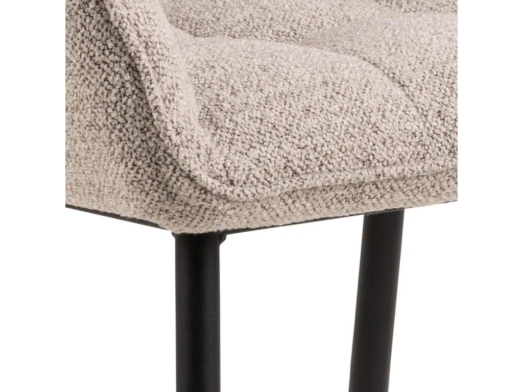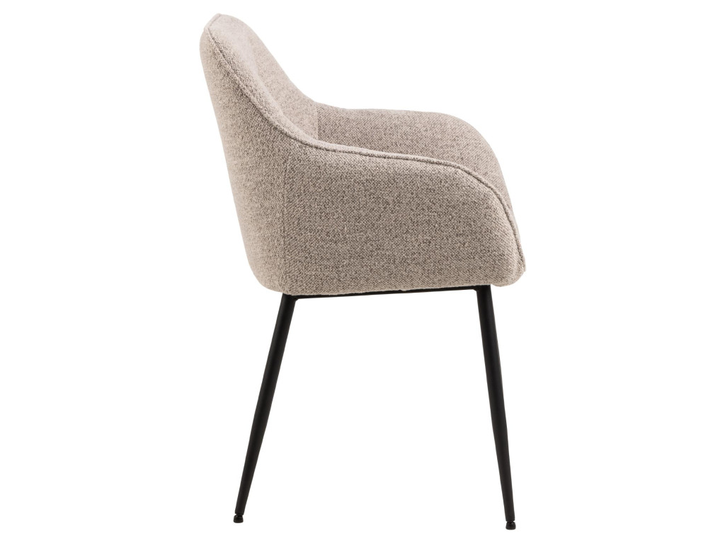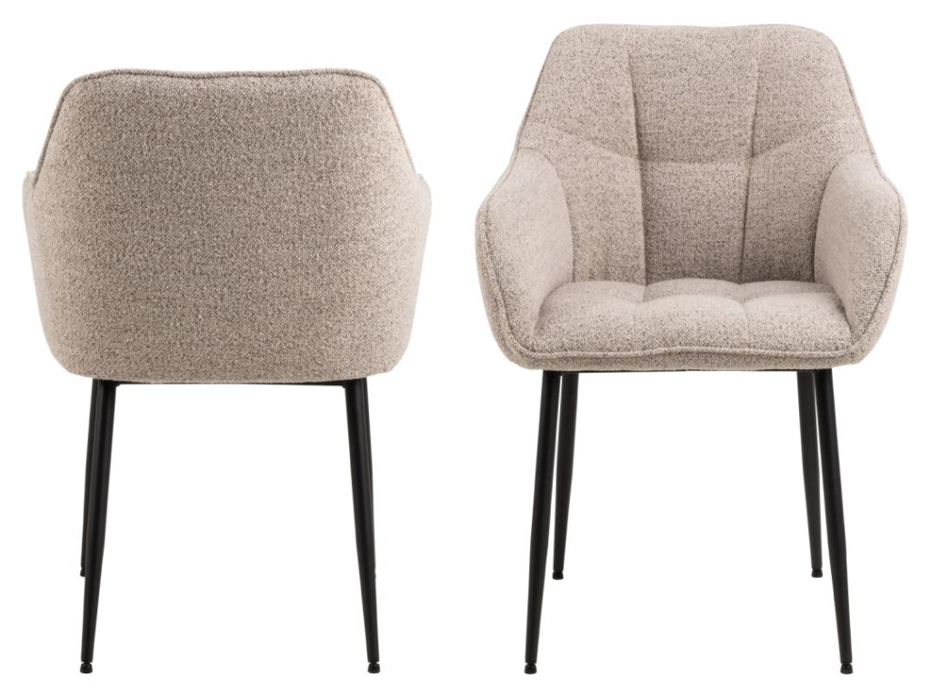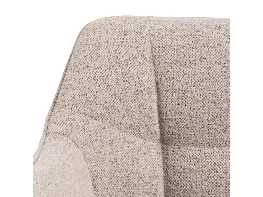Kreslo Brenda s lakťovou opierkou spája komfort a nadčasový dizajn. Béžová látka a čierna kovová podnož tvoria harmonickú kombináciu, zatiaľ čo prešívanie a zips na zadnej strane pridávajú jemný dekoračný detail.