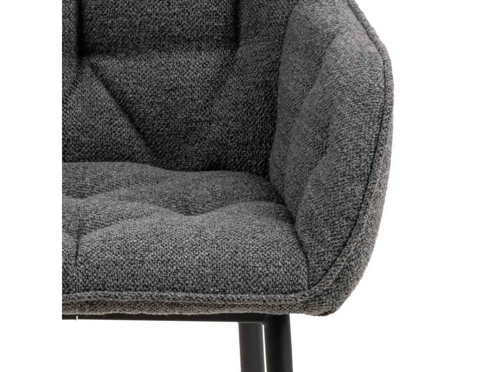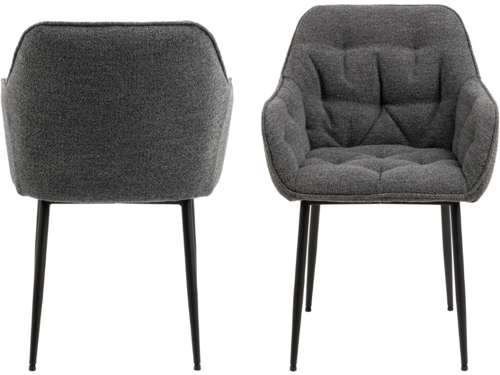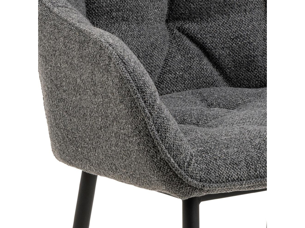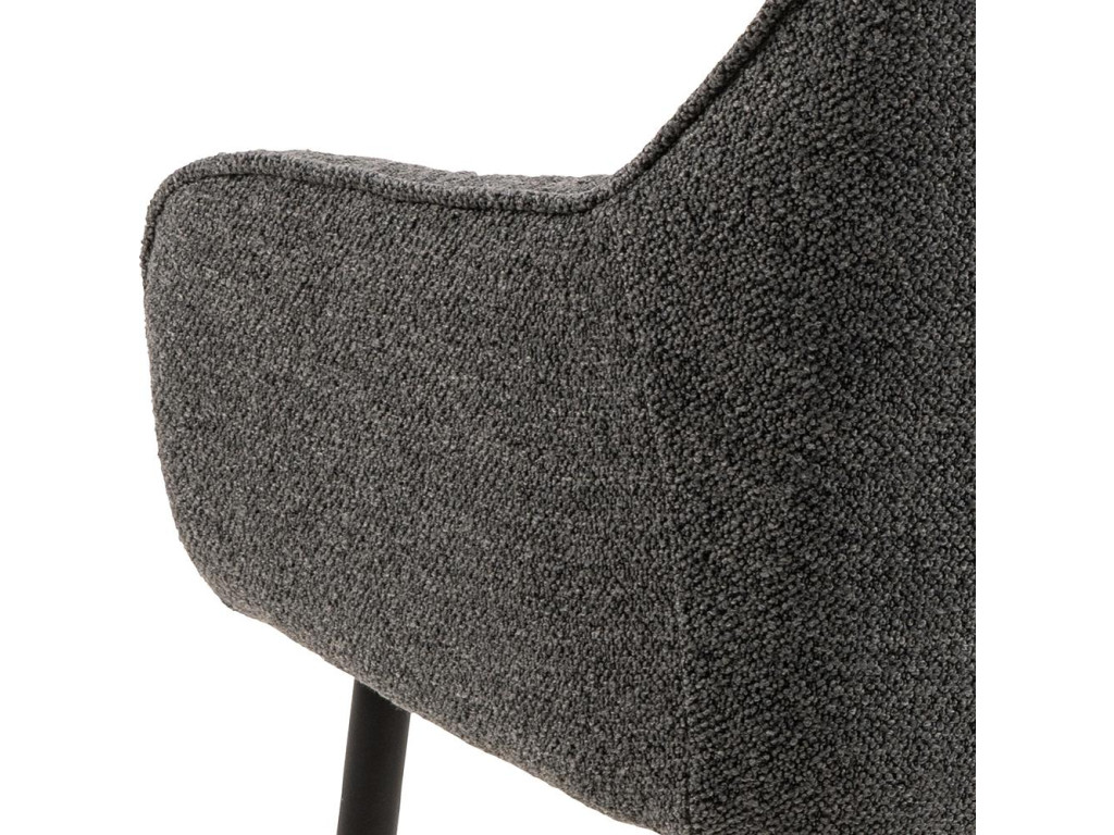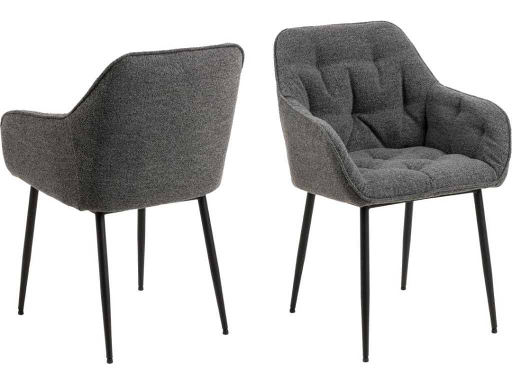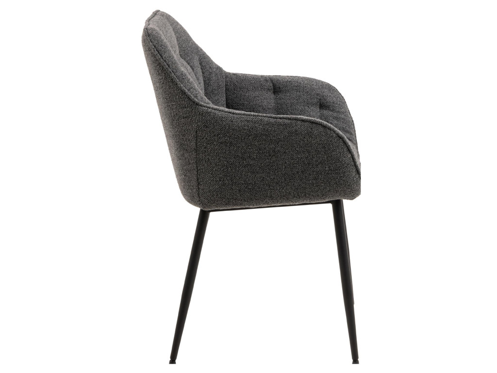 Antracitové kreslo Brooke je štýlové riešenie do jedálne alebo pracovne. Textilný poťah v tmavom tóne spolu s čiernou kovovou základňou vytvára harmonický a súčasný dizajn.