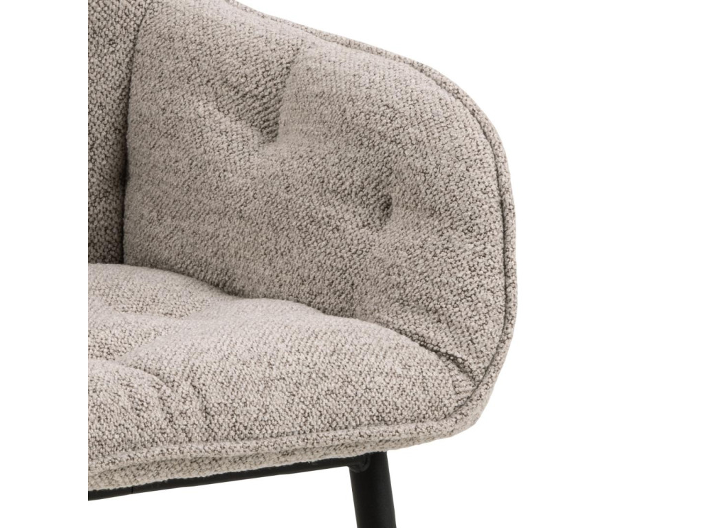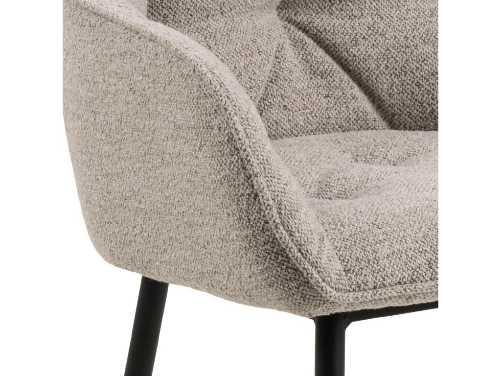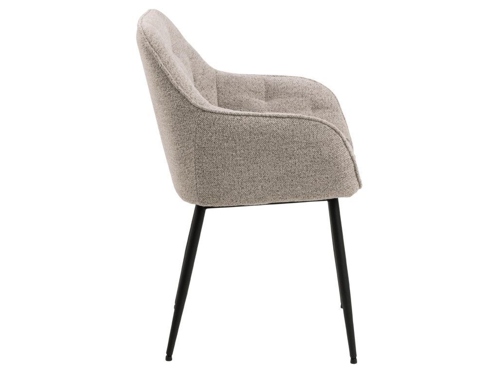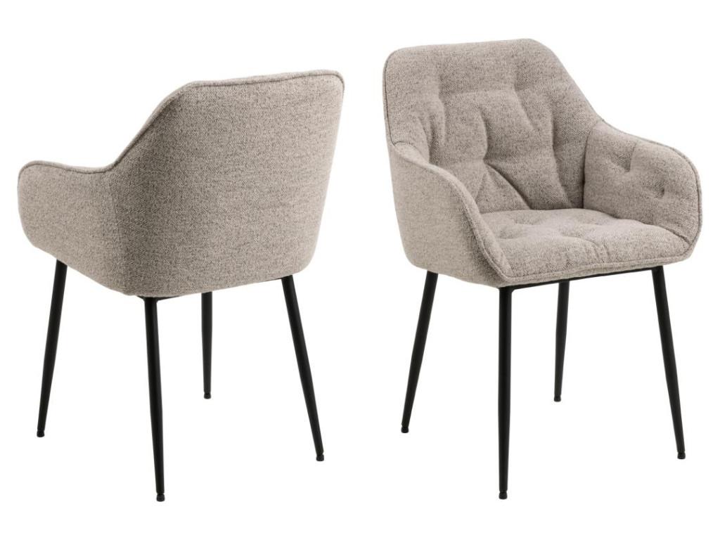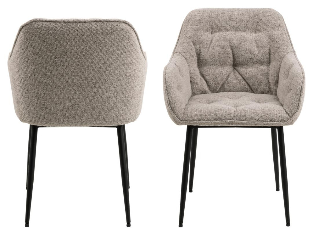 Kreslo Brooke s lakťovou opierkou kombinuje jemný textil a pevnú oceľ pre pohodlné a štýlové sedenie. Béžové čalúnenie a čierna podnož tvoria nadčasový kontrast vhodný do jedální a obývacích priestorov.