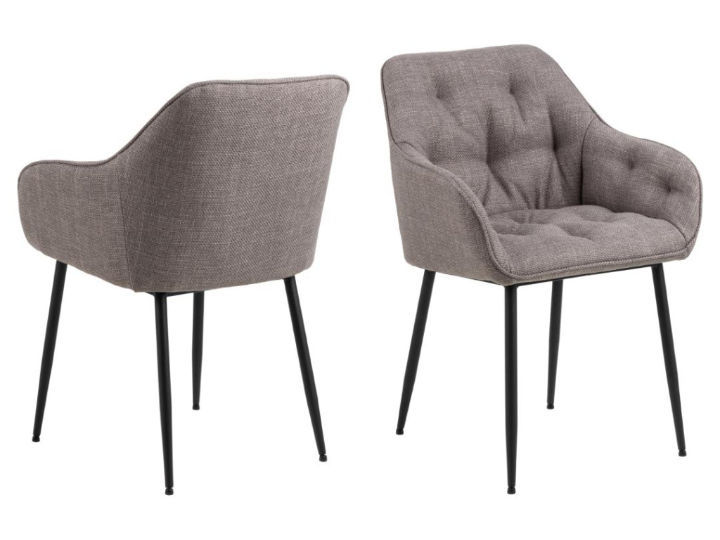 Stolička Brooke vo svetlosivom odtieni prináša jemný komfort a moderný vzhľad. Všívané čalúnenie, dekoratívny gombík a pevná čierna kovová konštrukcia robia z tejto stoličky atraktívny a funkčný doplnok jedálne či pracovne.