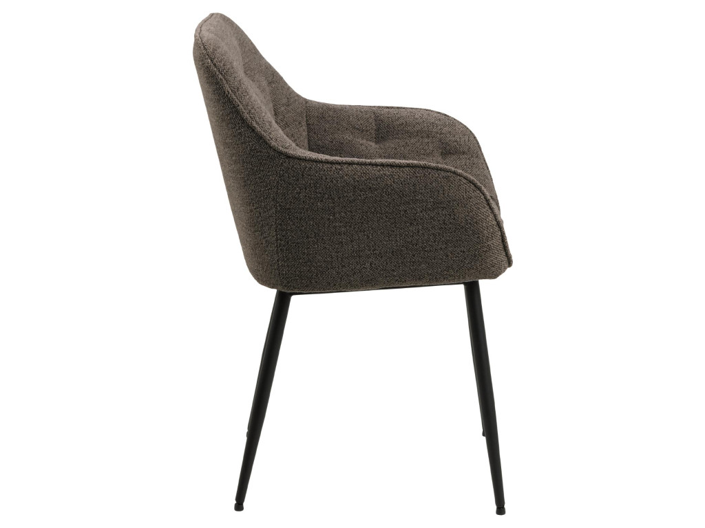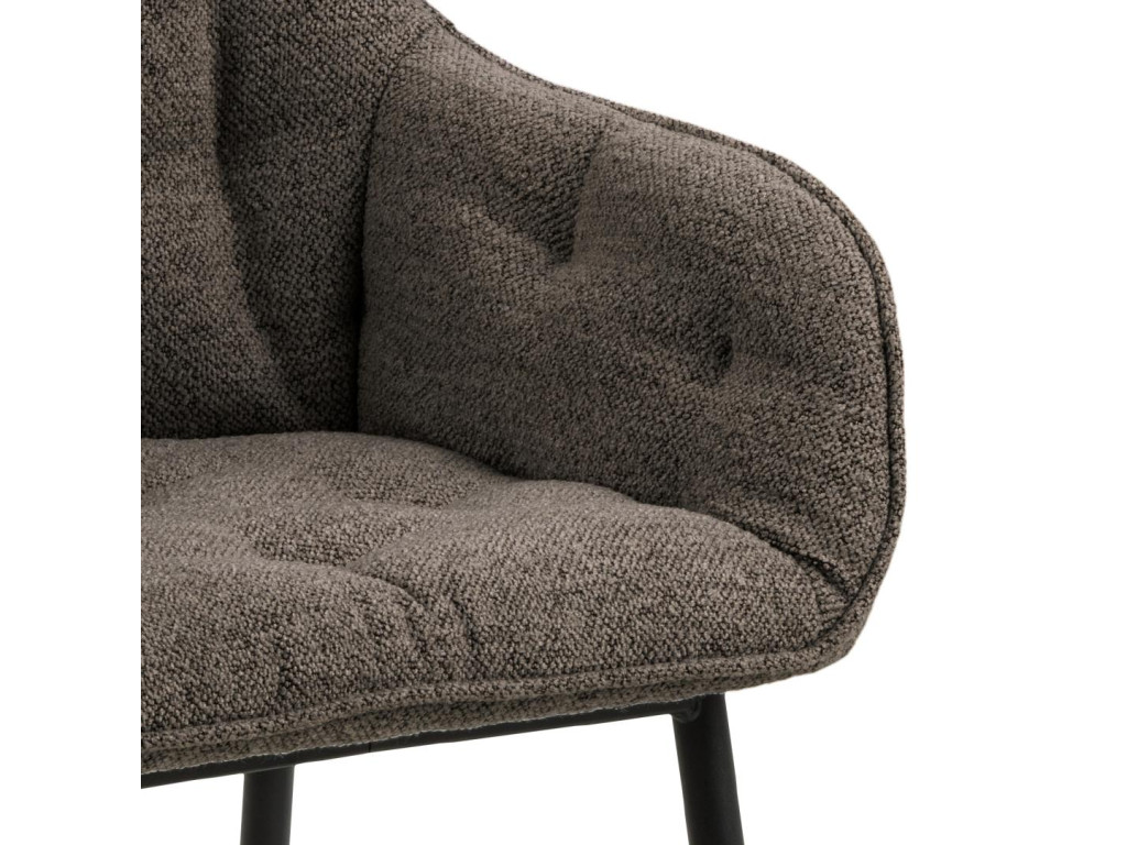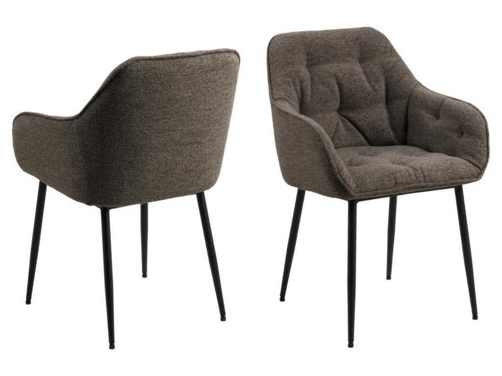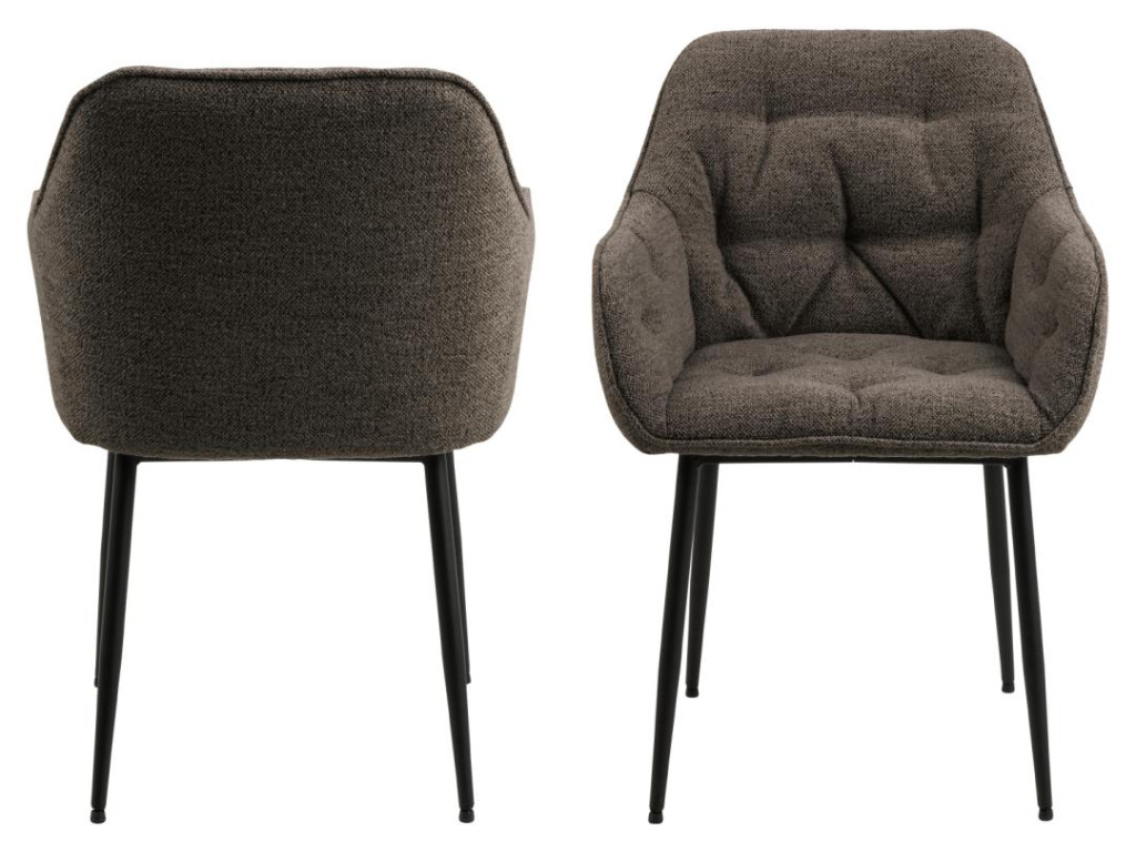 Stolička Brooke v taupe odtieni kombinuje pohodlie a elegantný dizajn. Všívané detaily, kvalitné čalúnenie a pevná kovová základňa vytvárajú harmonický celok. Lakťové opierky zvyšujú komfort pri sedení, zatiaľ čo tmavý kovový rám dodáva moderný nádych. Perfektne sa hodí k jedálenskému stolu, kde chcete spojiť vizuálny dojem s pohodlím.
