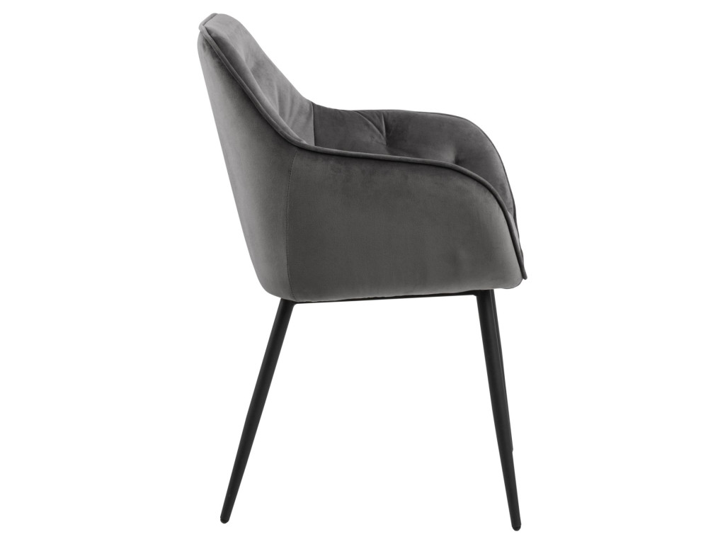 Kreslo Brooke v tmavosivej farbe ponúka komfortné sedenie s opierkami a výrazným čalúnením. Jeho robustná oceľová konštrukcia s čiernym povrchom zaručuje dlhú životnosť. Ideálny doplnok pre moderné jedálne alebo štýlové reštaurácie.