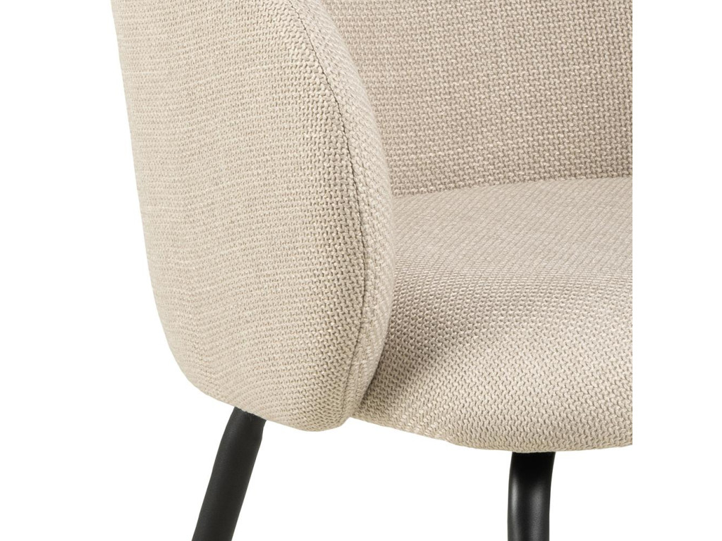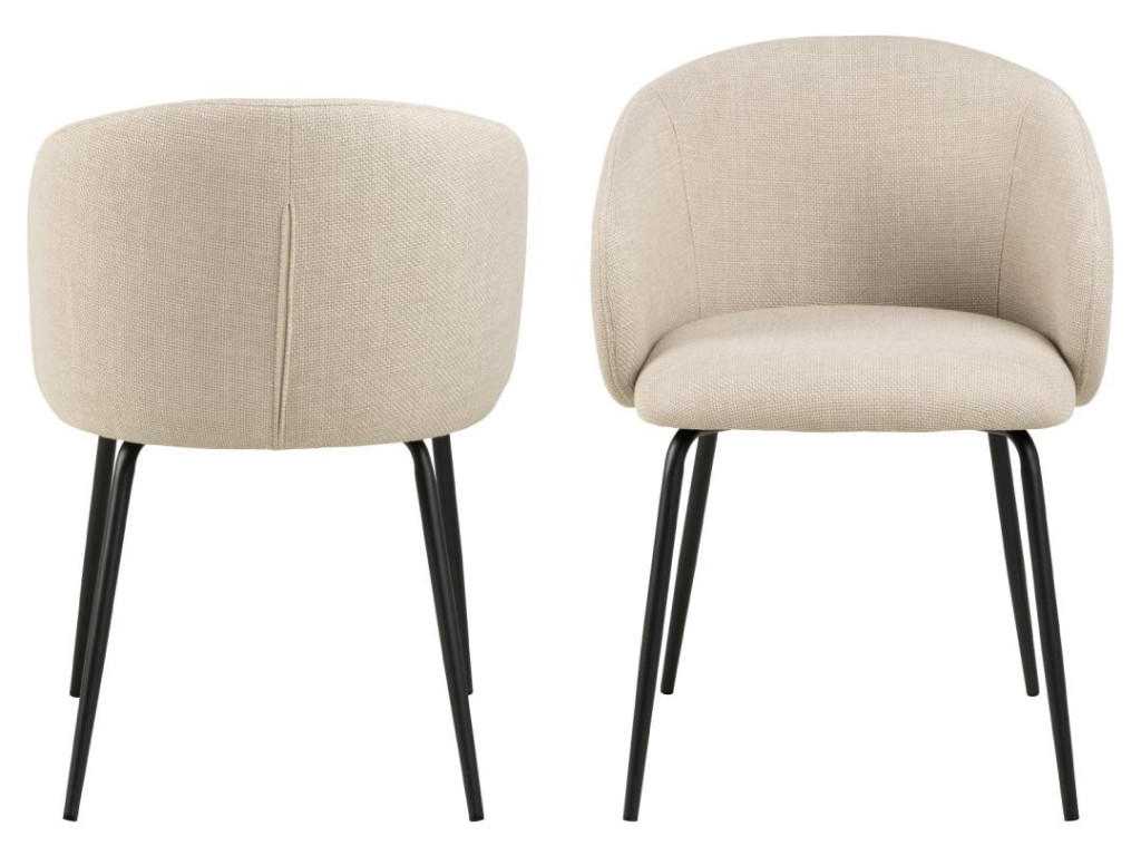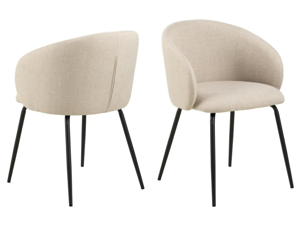 Kreslá Eleanor v béžovej farbe majú lakťové opierky a štýlové čalúnenie so zipsom. Matná čierna oceľová základňa podčiarkuje ich moderný vzhľad. Sú pohodlné a elegantné, ideálne do rodinných aj spoločenských priestorov.