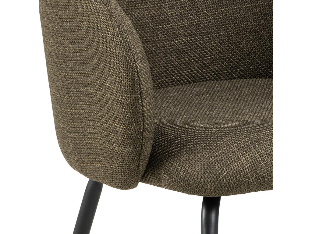 Kreslo Eleanor ponúka komfort vďaka čalúnenému sedáku v tmavozelenej látke Bazylej a praktickým lakťovým opierkam. Stabilná čierna oceľová konštrukcia je ošetrená práškovým nástrekom. Obsahuje ozdobný zips a gombík. Dodávané ako balenie 2 kusov.
