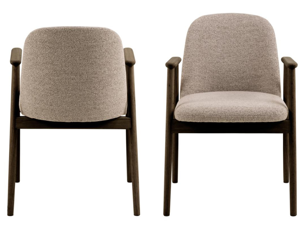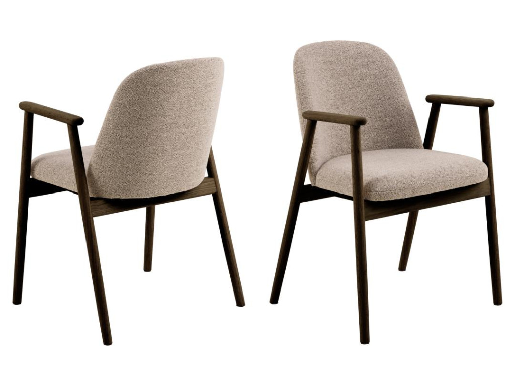 Jedálenské kreslo Leo v kombinácii béžovej látky a dymového dubu pôsobí elegantne a prírodne. Čalúnenie Monza FR poskytuje vysoký komfort. Základňa z lakovaného dubového dreva dodáva stabilitu. Balené po 2 kusoch.
