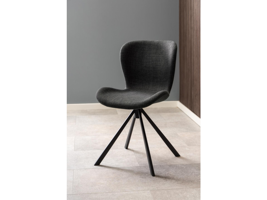 Stolička Batilda A1 v tmavosivej látke kombinuje štýl a funkčnosť. Otočná čierna oceľová podnož zaručuje stabilitu a komfort, zatiaľ čo cikcakovité prešívanie vytvára originálny dizajnový prvok. Ideálna voľba do moderného interiéru.
