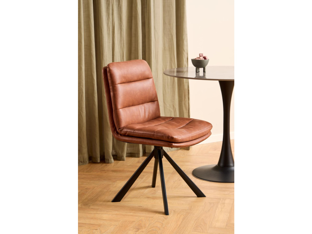 Otočná stolička Dean v retro štýle z hnedej ekokože a čiernej ocele je vybavená horizontálnym prešívaním a gombíkom. Vhodná na komfortné sedenie s otočnou funkciou. Štýlový doplnok do moderného interiéru. Balené po 2 ks.