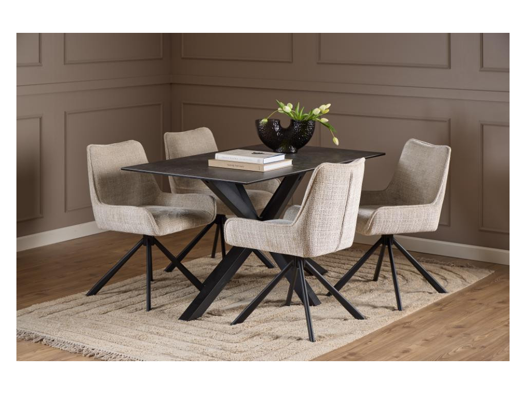 Stolička je dostupná v elegantnej farbe, v prevedení čierna / béžová, tak ju ľahko zladíte s akýmkoľvek interiérom – od klasického až po moderný. Stabilná konštrukcia dodáva stoličke pevnosť a odolnosť, zatiaľ čo čalúnenie z príjemnej látky pôsobí luxusne a príjemne na dotyk.