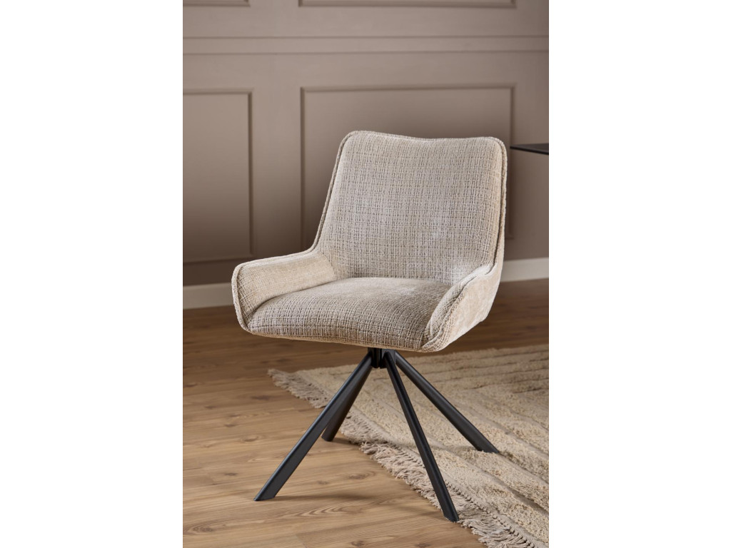 Stoličky Eddie ponúkajú otočný dizajn a pohodlné čalúnenie v béžovom prevedení. Stabilná štvorcová základňa a elegantný vzhľad ich predurčujú do moderných interiérov. Ideálne pre každodenné stolovanie. Sada obsahuje dve stoličky.