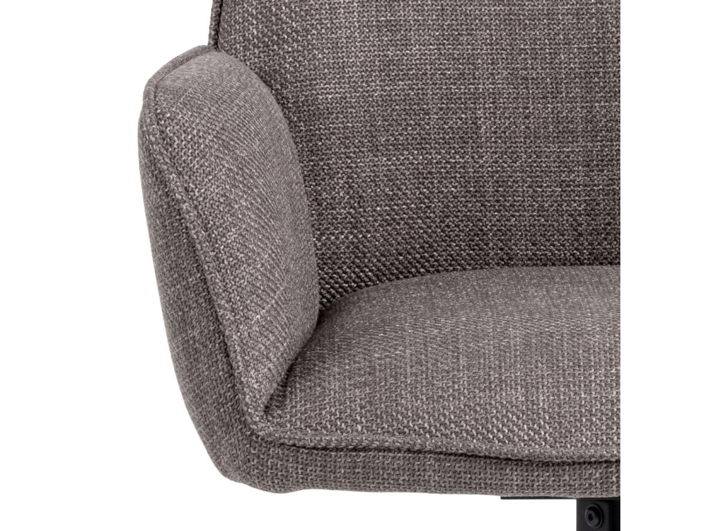 Jedálenské kreslo Glenda v svetlosivom odtieni prináša do priestoru jemnosť a nadčasovosť. Je vybavené praktickou otočnou funkciou a pevnou 4-hviezdicovou základňou z čiernej práškovanej ocele. Pohodlné čalúnenie a lakťové opierky robia z tohto kresla ideálnu voľbu pre dlhé stolovanie alebo stretnutia. Kombinácia svetlej látky a tmavej konštrukcie dodáva nábytku vizuálny kontrast a štýl.